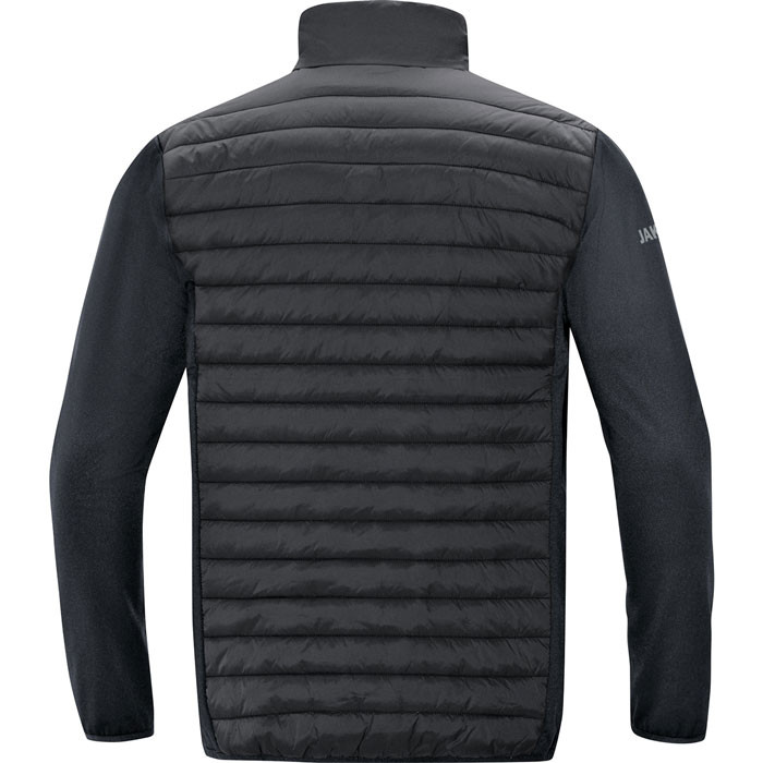 Die perfekte Jacke für den Business-Alltag! Die JAKO Hybridjacke kombiniert professionelles Aussehen mit praktischer Funktionalität. \\n\\nAusstattung die begeistert:\\n• Wärmeisolierende Wattierung - an Brust und Rücken für optimalen Komfort\\n• Elastische Ärmel und Seiten - für maximale Bewegungsfreiheit\\n• Seitentaschen mit Reißverschluss - sicherer Stauraum für Schlüssel, Geld etc.\\n• Durchgehender Frontreißverschluss - einfaches An- und Ausziehen\\n• Elastische Bündchen - an Jacken- und Ärmelabschluss\\n\\nMaterial: 100% Nylon Oberstoff, 100% Polyester Wattierung. Pflegeleicht und formstabil - einfach bei 30°C waschen (ohne Weichspüler) und links bügeln. Die ideale Jacke für den Weg zur Arbeit, Meetings oder Business-Events.