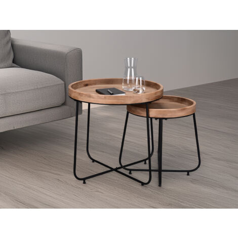 • Runder Couchtisch Ella - 45cm Holzoptik Braun Mit Metallgestell