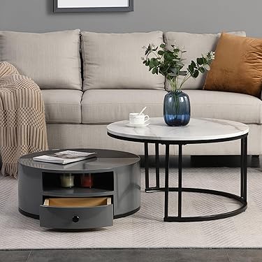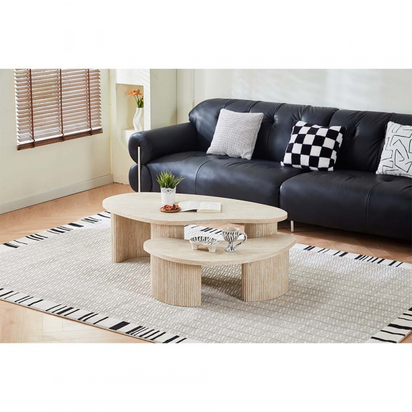 Wow, was für ein elegantes Couchtisch-Set! Im schicken Versailles-Design mit Travertin-Optik bringt es sofort mediterranes Flair in dein Wohnzimmer. Das Set besteht aus zwei Tischen - einem größeren (120x69,5x41,5 cm) und einem kleineren (91x49,5x30 cm) - die du zusammen oder einzeln nutzen kannst. Die asymmetrischen Platten sehen total modern aus, und die gerippten Füße geben dem Ganzen einen luxuriösen Touch. Aus stabilem MDF gefertigt, insgesamt 25,5 kg schwer. Wichtig: Direkten Kontakt mit Wasser vermeiden, dann hast du lange Freude daran. Perfekt fürs Wohnzimmer, aber auch für Flur oder Wintergarten. Sieht aus wie echter Stein, ist aber viel leichter und pflegeleichter - einfach mit einem trockenen Tuch abwischen!