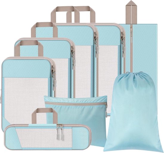 Pack-Probleme adé! Mit diesen Aurenis Packing Cubes wird das Kofferpacken zum Kinderspiel - und du gewinnst satte 60% mehr Platz! Das 5-teilige Set in Blau besteht aus verschiedenen Größen: 30x40cm, 40x40cm, 25x34cm, 20x30cm und einer praktischen Schuhtasche (35x10cm). Das Geheimnis: Der Kompressions-Reißverschluss presst die Kleidung zusammen - wie bei einem Vakuumbeutel, nur ohne Pumpe! So passen viel mehr Klamotten in deinen Koffer. Die wasserabweisende Oberfläche hält alles trocken, das atmungsaktive Mesh sorgt für Frische und verhindert Gerüche. Breite Griffe machen das Tragen leicht, die Reißverschlüsse laufen super smooth. Perfekt zum Organisieren: Oberteile, Hosen, Unterwäsche, Socken - alles hat seinen Platz. Nie wieder chaotisches Koffer-Graben! Ob Wochenendtrip, Geschäftsreise oder Urlaub - diese Packwürfel sind echte Game-Changer. Auch zu Hause super für Schrank-Ordnung. Leicht (nur 550g) und platzsparend - dein neues liebstes Reise-Zubehör!