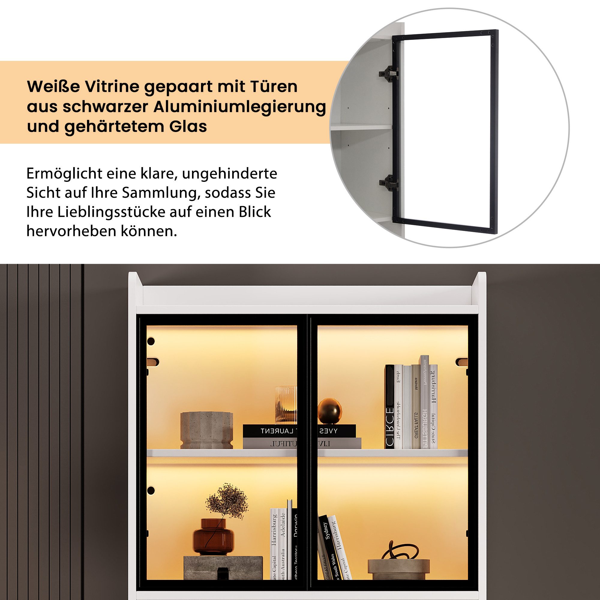 Wow, diese Vitrine ist einfach der Hammer! Mit 16 verschiedenen LED-Farben, die du bequem per Fernbedienung einstellen kannst. So holst du deine Sammlerstücke perfekt in Szene! Die Maße von 35,2x80x153,5cm bieten reichlich Platz für deine Schätze. Aus hochwertigen Spanplatten und schwarzem Aluminiumrahmen gefertigt - super stabil und hält ewig! Die Druck-Öffnung-Glastüren ohne Türgriff sehen nicht nur mega stylisch aus, sondern zeigen deine Sammlung auch optimal. Mit einer großen Schublade und verstellbaren Regalen passt du alles genau nach deinen Bedürfnissen an. Die Tragkraft von 50kg ist mehr als ausreichend für schwere Bücher oder Dekoration. Perfekt fürs Wohnzimmer, Büro oder als besonderes Möbelstück im Eingangsbereich. Die Anti-Kippvorrichtung sorgt für zusätzliche Sicherheit. Einfach aufbauen - die detaillierte Anleitung hilft dir dabei! Wird in zwei Kartons geliefert, also vor dem Aufbau alle Teile checken. Mach aus deiner Sammlung ein richtiges Highlight!