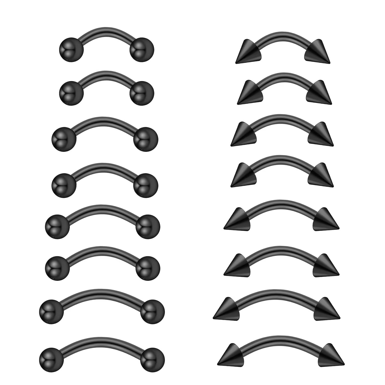 Piercing-Fans, dieses 12er-Set Curved Barbells ist genau das Richtige für euch! Perfekt für Augenbrauen, Lippe, Septum, Helix, Rook - basically überall wo's passt.
