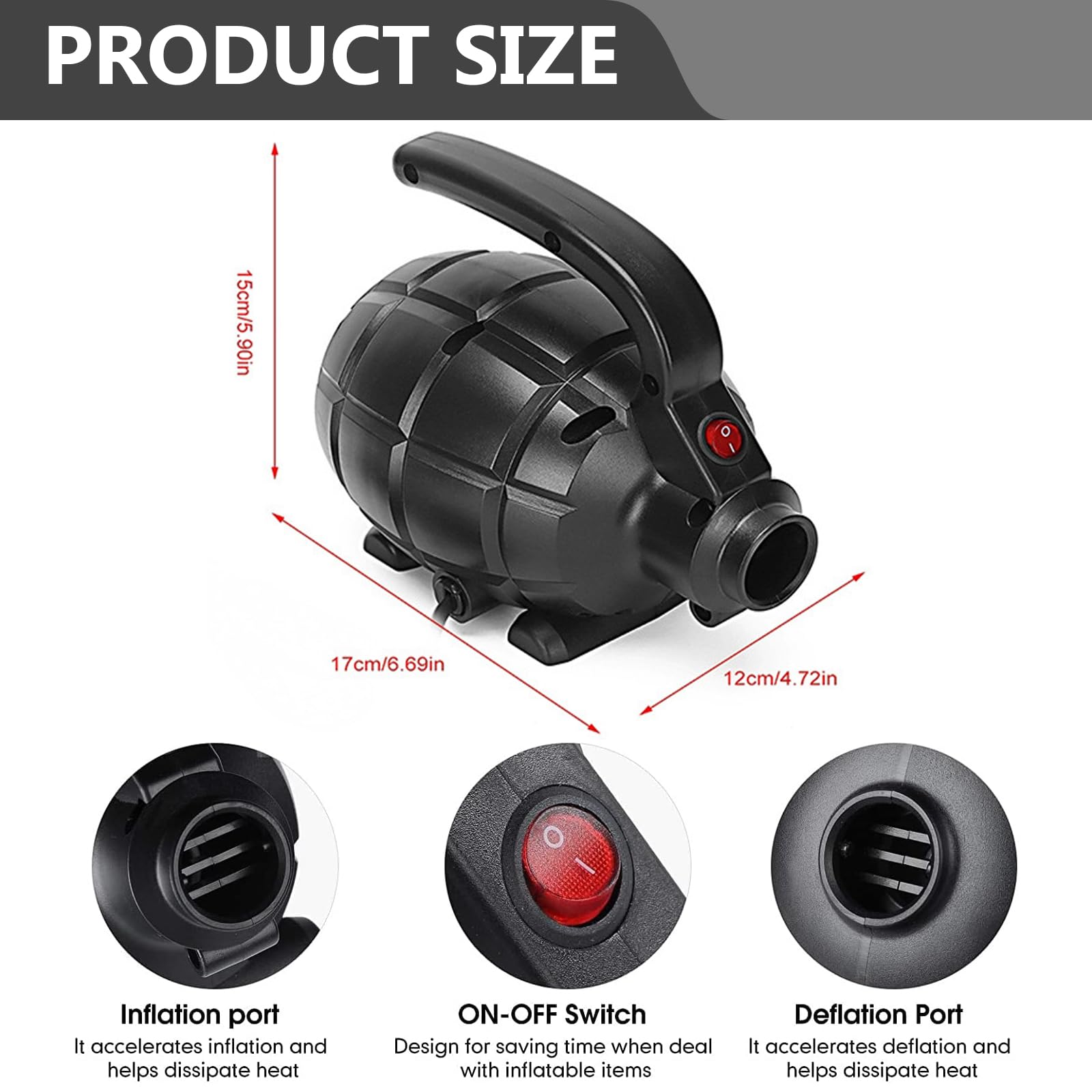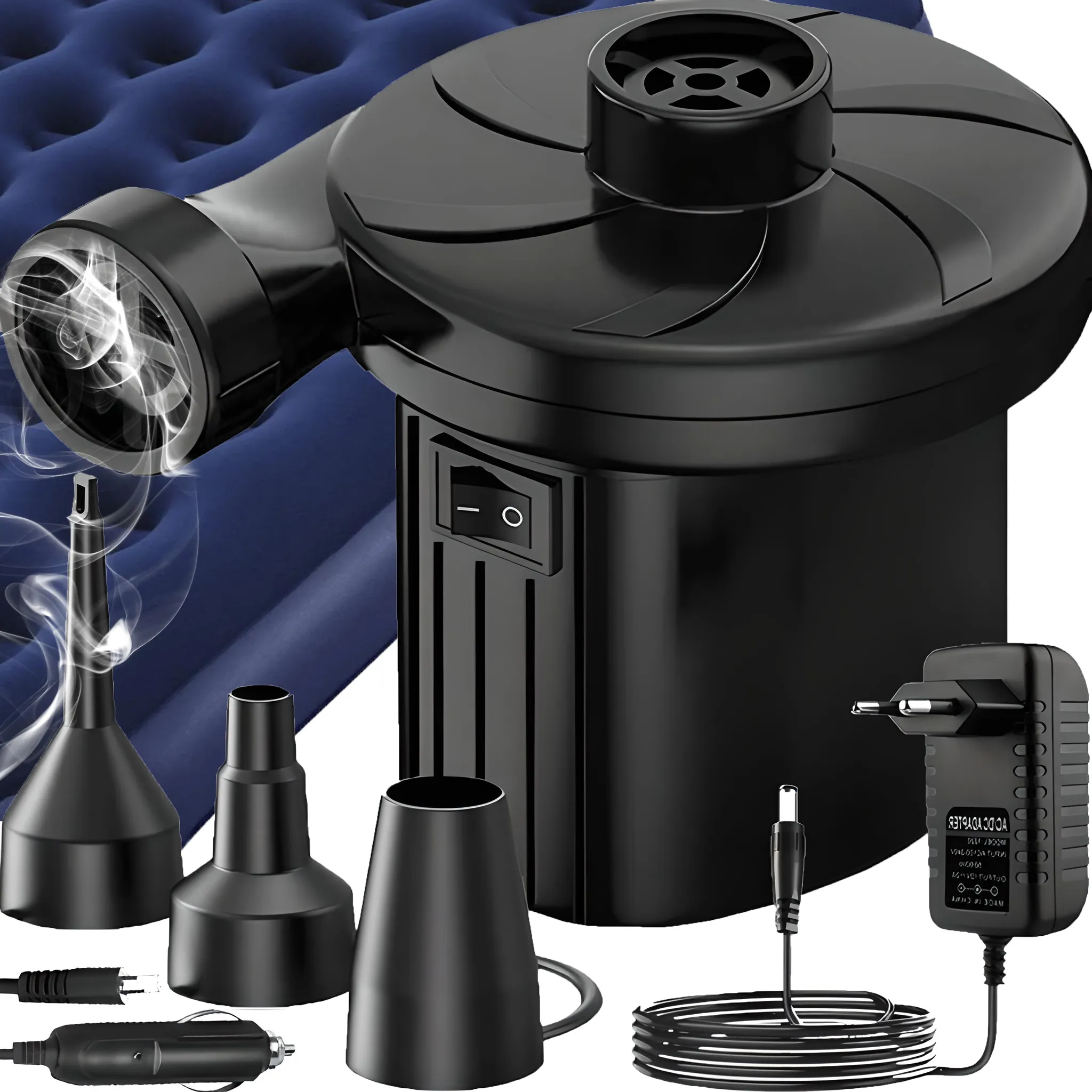 Schluss mit anstrengendem Aufpumpen! Diese kraftvolle 600W Luftpumpe von KIKILIVE macht das Befüllen von aufblasbaren Gegenständen zum Kinderspiel. Mit starken 2,5 PSI pumpt sie Luftmatratzen, Pools, Schwimmringe und vieles mehr in Minuten auf - deutlich schneller als Handpumpen! Das Komplett-Set enthält 4 verschiedene Düsen und einen Schlauch für hohe Kompatibilität. Perfekt für Camping, Strand, Garten oder zu Hause. Das kompakte Design (13,3x17cm) mit 172cm Kabel macht sie super tragbar und platzsparend. Sicherheitsfeatures inklusive: Überhitzungsschutz schaltet die Pumpe bei zu langem Betrieb automatisch ab - einfach abkühlen lassen und weiter nutzen! Das hitzebeständige Kabel und robuste Metall-Laufrad sorgen für Langlebigkeit und zuverlässige Leistung. Einfache Bedienung: Einstecken, Düse auswählen und Start drücken - schon geht's los! Ideal für aufblasbare Sofas, Spielzeug, Stege und Schwimmhilfen. Achtung: Nicht für Bälle oder Reifen geeignet! Für optimale Leistung wird intervallweiser Betrieb empfohlen. Hol dir diese praktische Pumpe und genieße entspanntes Aufblasen ohne Kraftaufwand - mehr Zeit für den eigentlichen Spaß! Perfekt für alle, die häufig mit aufblasbaren Gegenständen zu tun haben - ein echter Game-Changer für Camping-Enthusiasten und Familien!