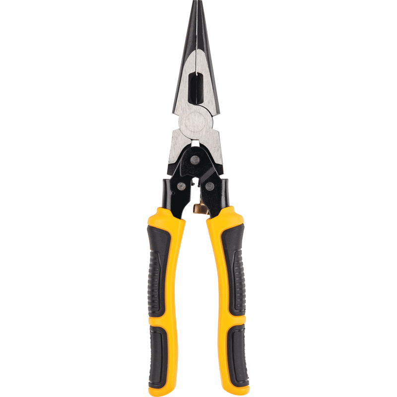 Moin Handwerker und Hobby-Heimwerker! Diese DEWALT Kombizange ist ein absoluter Alleskönner für deine Werkstatt. Mit der speziellen Kreuzstruktur auf den Backen packst du Werkstücke bombenfest - nichts rutscht mehr weg! Die induktionsgehärtete Schneide bleibt ewig scharf und durch das clevere Doppelgelenk brauchst du viel weniger Kraft. Kein Wunder, dass deine Hände nicht so schnell müde werden. Praktisch: Die Federung macht das Arbeiten super angenehm und die Arretierung sorgt dafür, dass die Zange sicher in deiner Tasche bleibt. Ob Drähte schneiden, Teile greifen oder Muttern festziehen - diese Zange meistert alles. Aus dem robusten DEWALT-Stahl gefertigt, hält sie jahrelang durch. Perfekt für Elektriker, Mechaniker und alle, die gern was selber machen. Einfach ein klasse Werkzeug das sich lohnt - damit machst du nichts verkehrt! Tipp: Die Zange liegt super in der Hand und die griffigen Stellen geben zusätzlichen Halt. Ein Must-have für jede Werkzeugtasche!