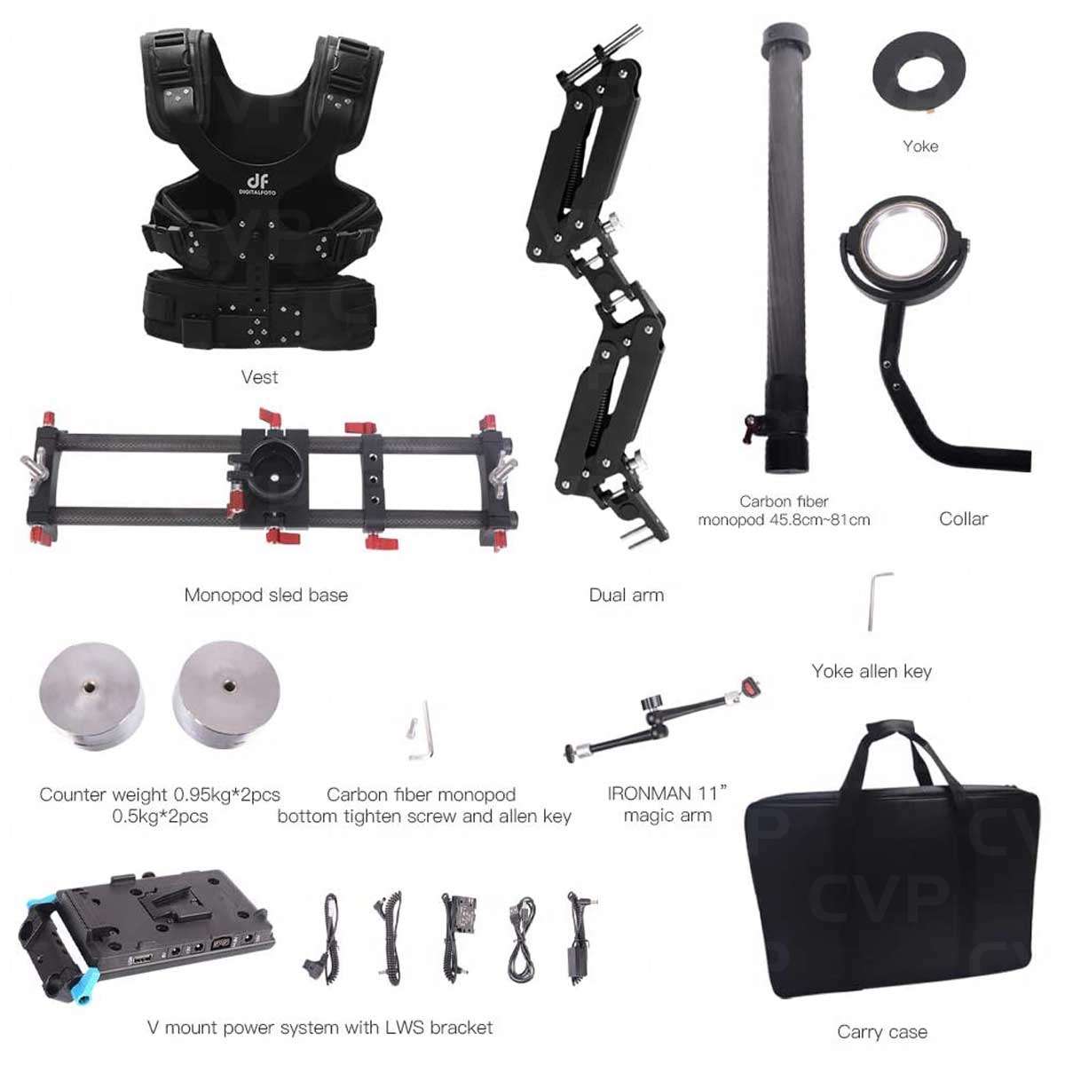 Professionelle Filmaufnahmen leicht gemacht! Das Thanos-Pro X Steadicam System von DFCINE ist das ultimative Unterstützungssystem für deine DSLR-Kamera und deinen Gimbal. Mit einer Nutzlast von 5-18 kg ist es perfekt für schwere Kameras und Gimbals wie DJI RS2, RS3, RS3PRO, RS4 und RS4PRO. Die verstellbare Weste mit Dual-Arm-Unterstützung sorgt für maximalen Komfort auch bei langen Drehs. Das System besteht aus leichter, aber robuster Kohlefaser und Aluminiumlegierung. Der 360-Grad drehbare Einbeinstativ verbessert die Stabilität deiner Aufnahmen um 30% - ideal für dynamische Low-Angle-Shots. Im Lieferumfang sind Gegengewicht, Schnellwechselplatte, Dockingplatte und sogar ein V-Mount-Batteriesystem enthalten. Alles, was du für professionelle Videoproduktion brauchst!