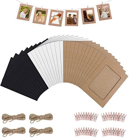 Dieses süße Set mit 30 Fotolijsten aus Pappe ist perfekt für deine Wanddekoration! Enthält 15 braune und 15 weiße Rahmen plus Hanfseile und Klammern. Die Innenmaße von 4,4x6 cm passen perfekt für kleine Fotos. Einfach zu montieren: Foto rein, mit Klammer befestigen und an der Schnur aufhängen. Aus umweltfreundlichem Kraftpapier, wiederverwendbar und super für DIY-Projekte. Ideal für Zuhause, Büro, Café oder Klassenzimmer. Du kannst die Rahmen auch mit Aufklebern oder Graffiti verzieren - deiner Kreativität sind keine Grenzen gesetzt. Schafft eine gemütliche, persönliche Atmosphäre an jeder Wand. Einfach bestellen und loslegen!