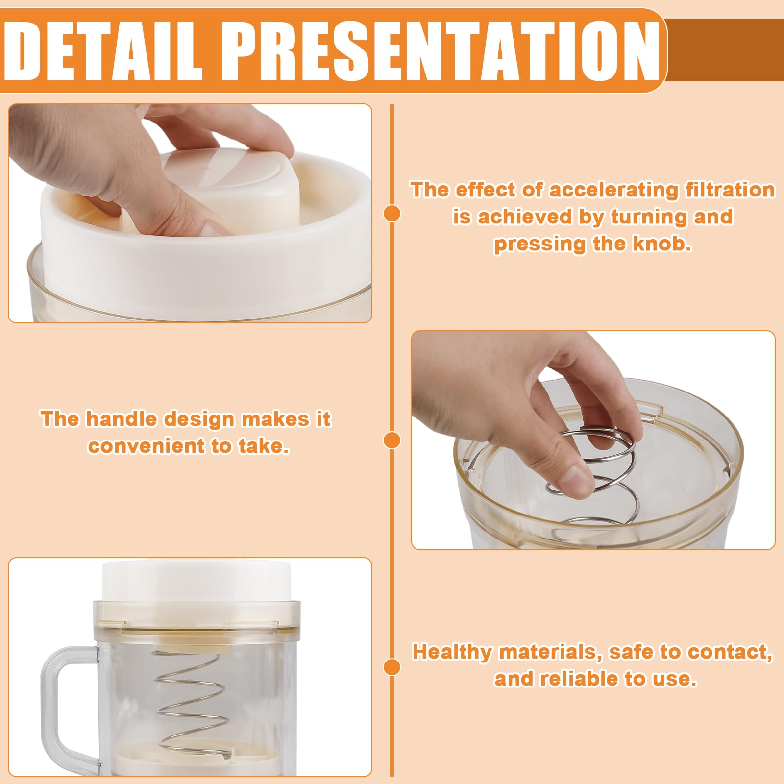 Mit der Druckfeder wird die Molke schneller abgetrennt - für extra cremigen Genuss! Die 200-Maschen-Filtertücher sorgen für perfekte Filtration. Drei Filtertücher sind im Lieferumfang - du kannst also sofort loslegen oder hast Ersatz parat.
