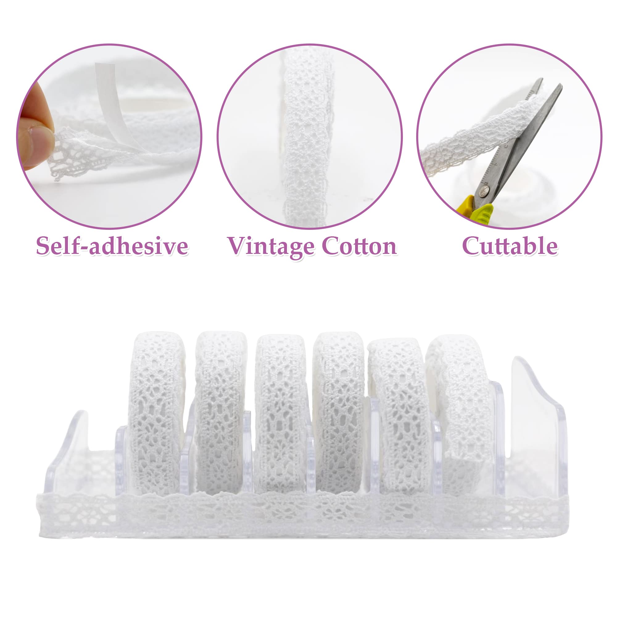 Kreative aufgepasst! Dieses selbstklebende Spitzenband aus 100% Baumwolle ist dein neuer bester Freund für alle Bastelprojekte. Ob für Hochzeitsdeko, Scrapbooking, Geschenkverpackungen oder Home Decor - mit dem eleganten Weiß-Ton verleihtst du allem eine romantische Note. Das Beste: Die selbstklebende Rückseite macht die Anwendung super einfach - einfach abziehen und aufkleben! Du bekommst 6 Rollen mit je 1,8m Länge und 1,5cm Breite - genug Material für zahlreiche Projekte. Das Band ist weich, bequem und wiederverwendbar, falls mal was schiefgeht. Egal ob du Einladungen gestaltest, Fotoalben verschönern oder dein Zuhause dekorieren willst - mit diesem Spitzenband werden deine Ideen Wirklichkeit. Tauche ein in die Welt des DIY und lass deiner Kreativität freien Lauf! Perfekt für alle, die individuelle und persönliche Geschenke lieben.