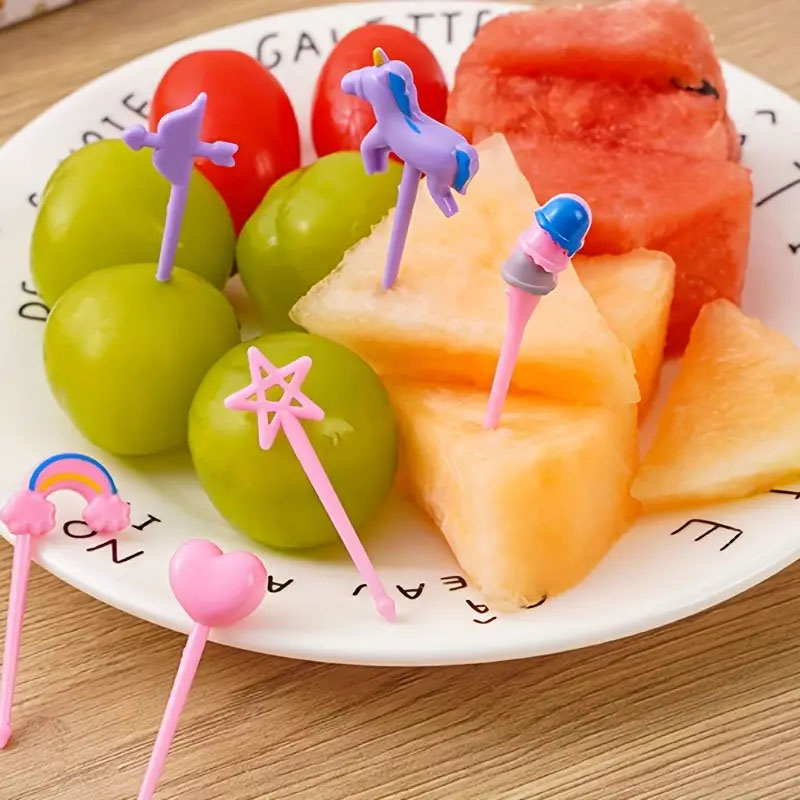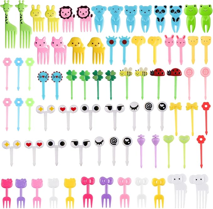 Macht gesunde Snacks zum spaßigen Erlebnis! Diese 120 bunten Obstspieße verwandeln langweiliges Obst und Gemüse in lustige Fingerfood-Kreationen. Mit süßen Tier-Motiven wie Tiger, Hase, Löwe und Affe werden selbst Obst-Muffel zum Zugreifen animiert.\\n\\nAus hochwertigem ABS-Kunststoff gefertigt, sind die Spieße robust, wiederverwendbar und lebensmittelecht. Die glatte Oberfläche lässt sich super einfach reinigen - einfach unter fließendem Wasser abspülen und schon sind sie wieder einsatzbereit.\\n\\nPerfekt für:\\n- Kindergeburtstage und Partys\\n- Kindergarten und Schule\\n- Brotdosen für unterwegs\\n- Familien-Frühstück\\n- Buffets und Feiern\\n\\nWarum Eltern diese Spieße lieben:\\n- Motivieren Kinder zu gesunder Ernährung\\n- Praktisch für unterwegs\\n- Wiederverwendbar und langlebig\\n- Einfache Reinigung\\n- Süße Designs begeistern Kinder\\n\\nWichtiger Hinweis: Nicht geeignet für Kinder unter 3 Jahren! Immer unter Aufsicht von Erwachsenen verwenden.\\n\\nMach die nächste Mahlzeit zu einem farbenfrohen Abenteuer - deine Kinder werden begeistert sein!