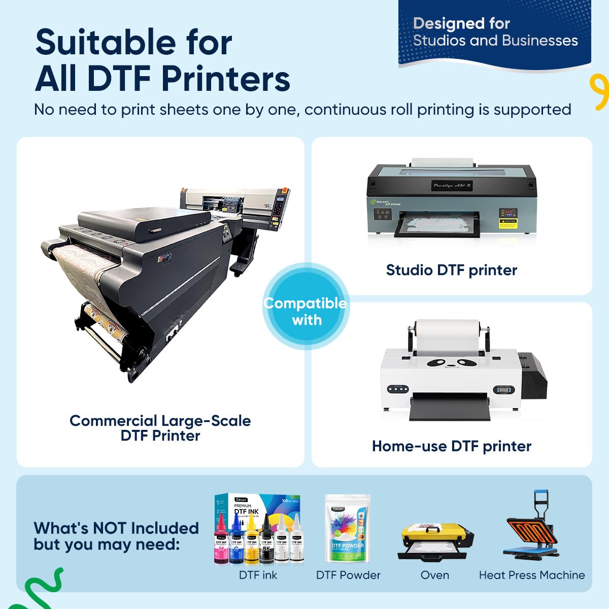Für alle, die gerne T-Shirts bedrucken: Diese DTF-Transferfolie ist genau das Richtige! Mit 30cm Breite und 100m Länge hast du genug Material für viele Projekte. Die Folie ist doppelseitig matt und funktioniert sowohl für kalte als auch heiße Transfermethoden. Das Tolle: Sie liefert super lebendige Drucke auf dunklen UND hellen Textilien! Ob T-Shirts, Hoodies oder andere Kleidungsstücke - deine Designs kommen perfekt rüber. Die Folie ist nur 0,08mm dick, aber trotzdem robust und flexibel. Speziell entwickelt für DTF-Drucker, garantiert sie ein reibungsloses Druckerlebnis. Perfekt für kleine Businesses, Kreative oder alle, die gerne individuelle Shirts gestalten. Einfach Design drucken, aufbügeln oder kalt abziehen - und schon hast du ein professionell aussehendes Ergebnis!