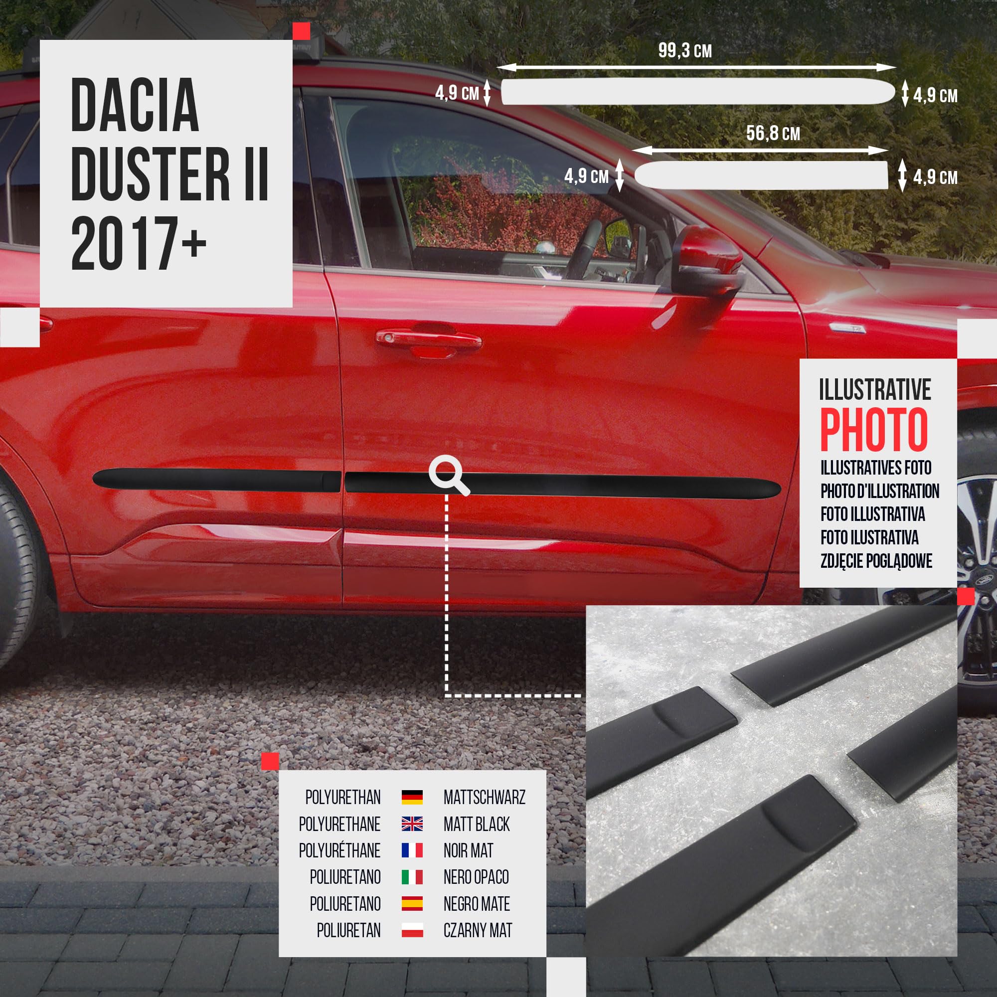 Dein Dacia Duster ist dir heilig? Dann schütz die Türschweller vor Kratzern, Schmutz und Abnutzung! Diese Schwellerabdeckungen aus robustem ABS-Kunststoff sind genau dafür gemacht. Einfach aufkleben – das starke Klebeband hält auch in der Waschstraße. Sie sehen nicht nur gut aus (matt schwarz), sondern bewahren auch den Wiederverkaufswert deines Autos. Egal ob die Kinder einsteigen, du Einkäufe verlädst oder der Hund mitfährt – die Schwellen bleiben makellos. Das Set enthält vier Teile plus Anleitung. Einfach die Schwellen reinigen, Abdeckung an der richtigen Stelle anbringen, festdrücken – fertig! Wenn du also deinen Duster lange schön halten willst, ist das ein Must-Have. Einfach bestellen, anbringen und entspannt bleiben!