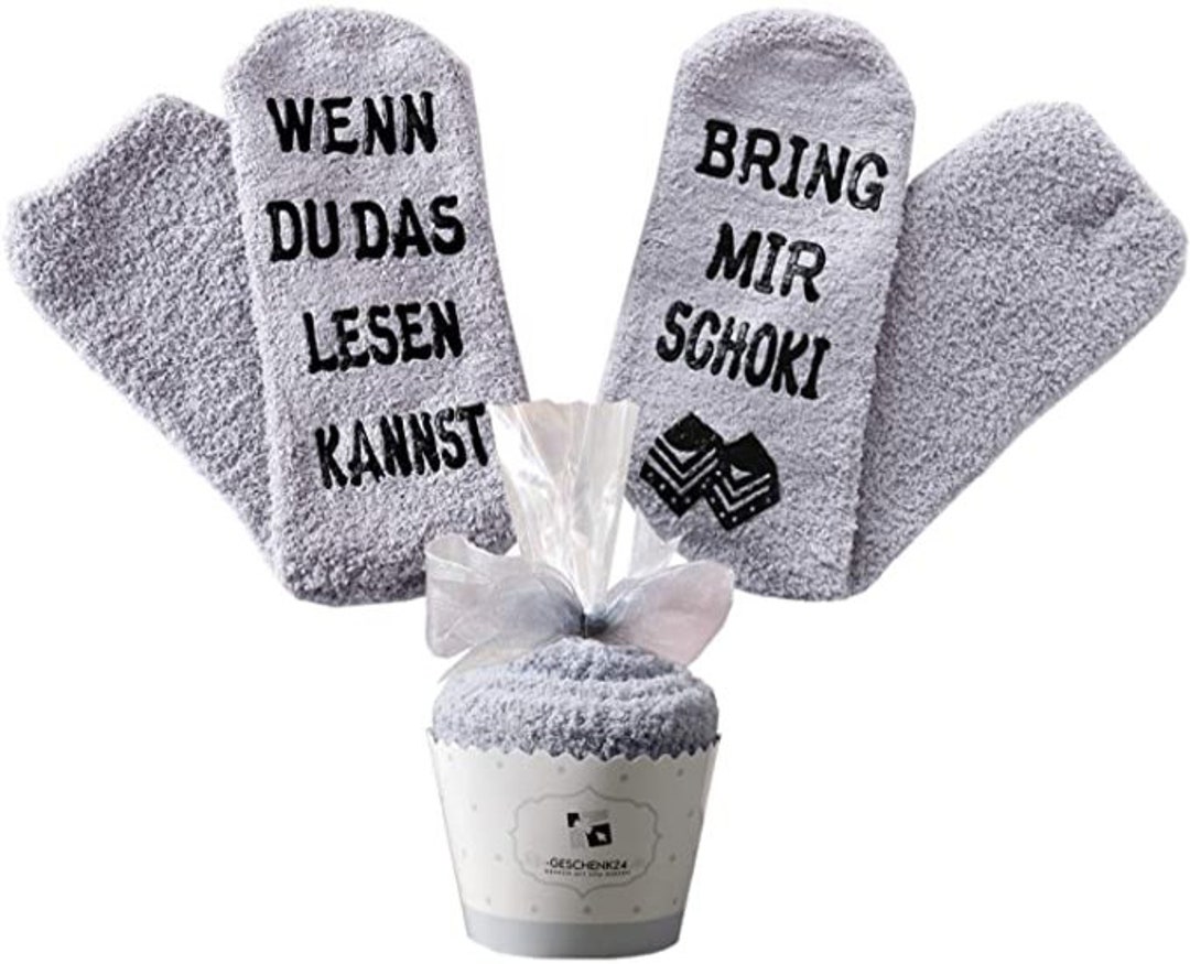 Diese lustigen Socken von Gemtte bringen garantiert ein Lächeln ins Gesicht! Mit dem Spruch 'WENN DU DAS LESEN KANNST BRING MIR SCHOKI' sind sie das perfekte Geschenk für Schoko-Liebhaber. Aus 80% Baumwolle super weich und atmungsaktiv. Die rutschfeste Sohle gibt sicheren Halt auf glatten Böden - ideal fürs gemütliche Zuhause. In Einheitsgröße 36-40 passen sie fast jeder Frau. Perfekt für Mama, Oma, Freundin oder Tochter - ob zum Muttertag, Geburtstag oder einfach so. Einfach den Fuß heben und den humorvollen Spruch präsentieren. Weich, witzig und praktisch - mehr braucht es nicht für gute Laune! Ein Geschenk, das garantiert ankommt.