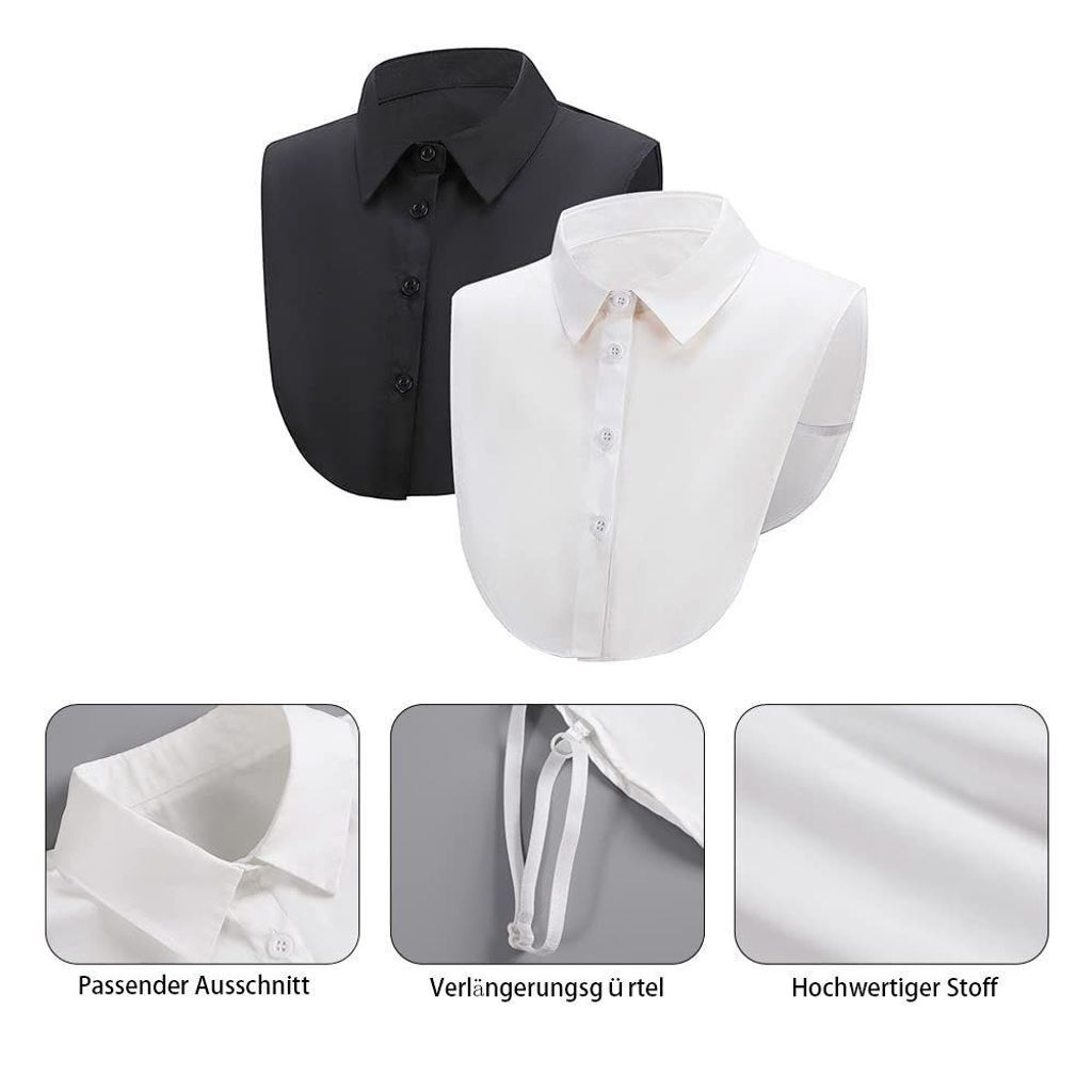 Kennst du das? Du willst mal was Anderes tragen, aber keine komplette Bluse? Dann ist dieser abnehmbare Blusenkragen genau das Richtige! Einfach über dein T-Shirt, deinen Pullover oder dein Kleid ziehen - und schon sieht dein Outfit gleich viel eleganter aus. Aus weicher, atmungsaktiver Baumwolle gefertigt, ist der Kragen super angenehm zu tragen und verursacht keine Hautirritationen. Die elastischen Bänder an beiden Seiten sorgen für perfekten Sitz, ohne zu drücken oder zu verrutschen. Das klassische Stehkragen-Design mit robusten Knöpfen verleiht dir sofort mehr Stil - ob im Büro, beim Date oder auf der Party. Und wenn du ihn nicht brauchst, klappst du ihn einfach zusammen und steckst ihn in deine Handtasche. Nimmt kaum Platz weg, macht aber einen riesigen Unterschied! Perfekt um langweilige Basics aufzupeppen - probier's aus!