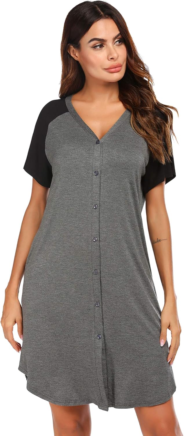 Uniexcosm Stillnachthemd Damen - Baumwolle Umstandsnachthemd Mit Knopfleiste