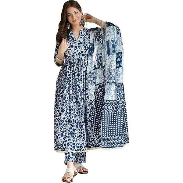 Wow, dieses indische Kurti-Set in Blau ist einfach traumhaft schön! Das Komplett-Set besteht aus der Tunika, einer passenden Hose und einem eleganten Dupatta-Tuch - alles aus weicher Baumwolle. Der Blumen-Druck ist filigran und die Farben harmonieren perfekt miteinander. Größe XL hat eine Tunika-Länge von 114,3cm und eine Hosenlänge von 96,52cm - also auch für etwas größere Damen geeignet. Perfekt für Hochzeiten, Feste oder einfach für besondere Anlässe - du wirst definitiv auffallen! Der Stoff ist hautfreundlich und kratzt nicht - super wichtig bei langen Feiern. Kombiniere das Outfit mit Sandalen und einer Clutch - dann sitzt der Look! Ob für die nächste Party, das Festival oder als Geschenk für deine Liebsten - dieses Set macht immer was her. Und falls du mehr solche schönen Kurtis sehen willst - schau einfach bei Trafaart vorbei! Handwäsche ist empfohlen - so bleibt die Farbe lange intensiv. Stell dir vor, wie du in diesem Outfit im Mittelpunkt stehst - einfach nur klasse! Indischer Style meets moderner Komfort - was will man mehr?