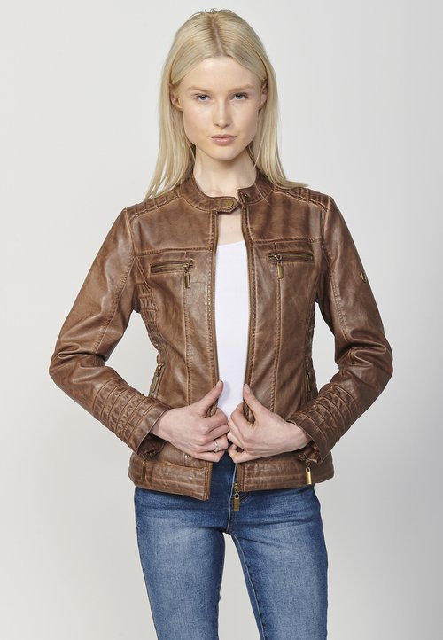 Dieser Blazer in Lederoptik ist ein absolutes Must-Have für deinen Kleiderschrank! Mit figurbetonter Passform und Langarm-Schnitt sitzt er perfekt und verleiht dir einen eleganten, aber lässigen Look. Ob zum Business-Outfit, zum Date oder einfach nur für einen stylischen Tag in der Stadt – dieser Blazer passt immer. Die Lederoptik wirkt hochwertig und trendbewusst, ohne aufdringlich zu sein. Unser Model trägt Größe 36 – aber schau am besten selbst, welche Größe dir am besten steht. Einfach anziehen und sich gut fühlen – mit diesem Blazer machst du immer eine gute Figur!