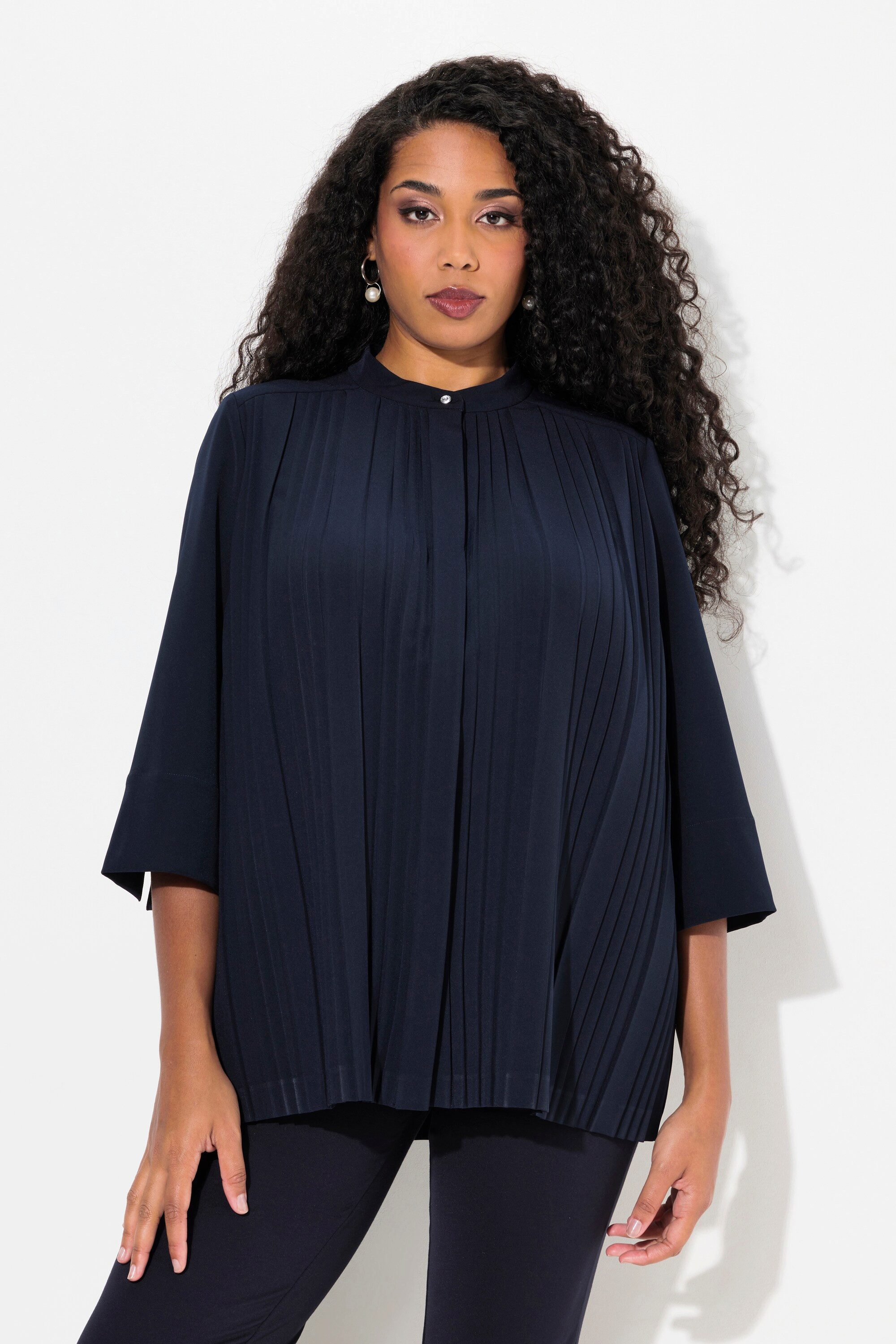 Der Schlingkragen betont deine Halslinie total schmeichelhaft und gibt dem klassischen Hemd-Design einen modernen Twist. Und der Rundhalsausschnitt lässt deine Gesichtszüge richtig gut zur Geltung kommen - da sieht jede Kette sofort toll aus!