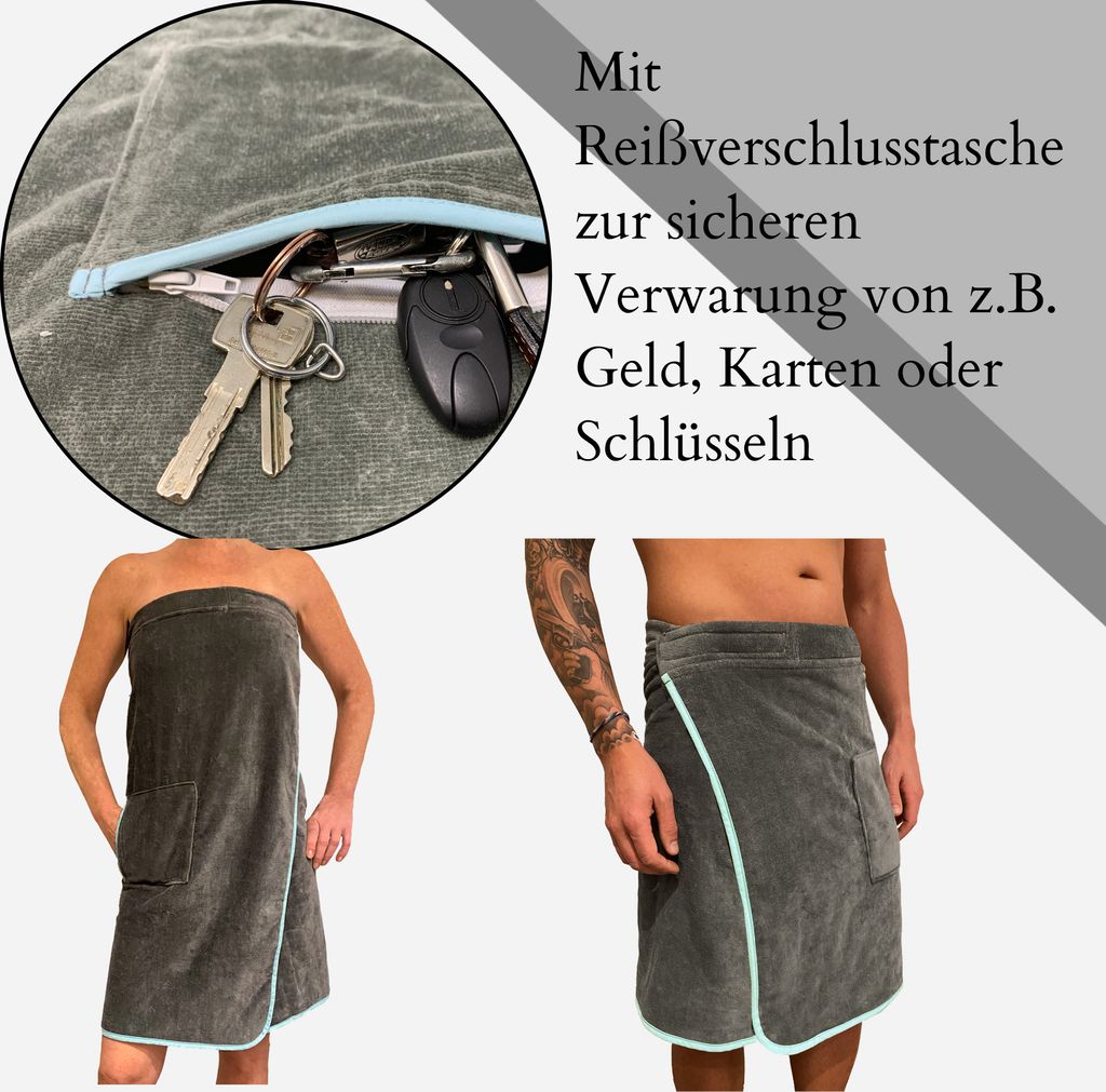 Der Saunakilt ist größenverstellbar durch Klettverschluss und passt sich deiner Figur perfekt an. Außenseite aus weichem Velours, Innenseite aus saugfähigem Frottee - saugt Schweiß sofort auf. Macht jeden Saunabesuch zum puren Wellness-Erlebnis!