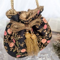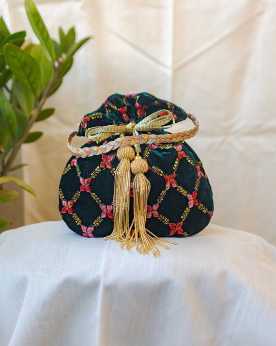 • Handgefertigte Potli-Tasche Damen - Indischer Samt Mit Perlenstickerei