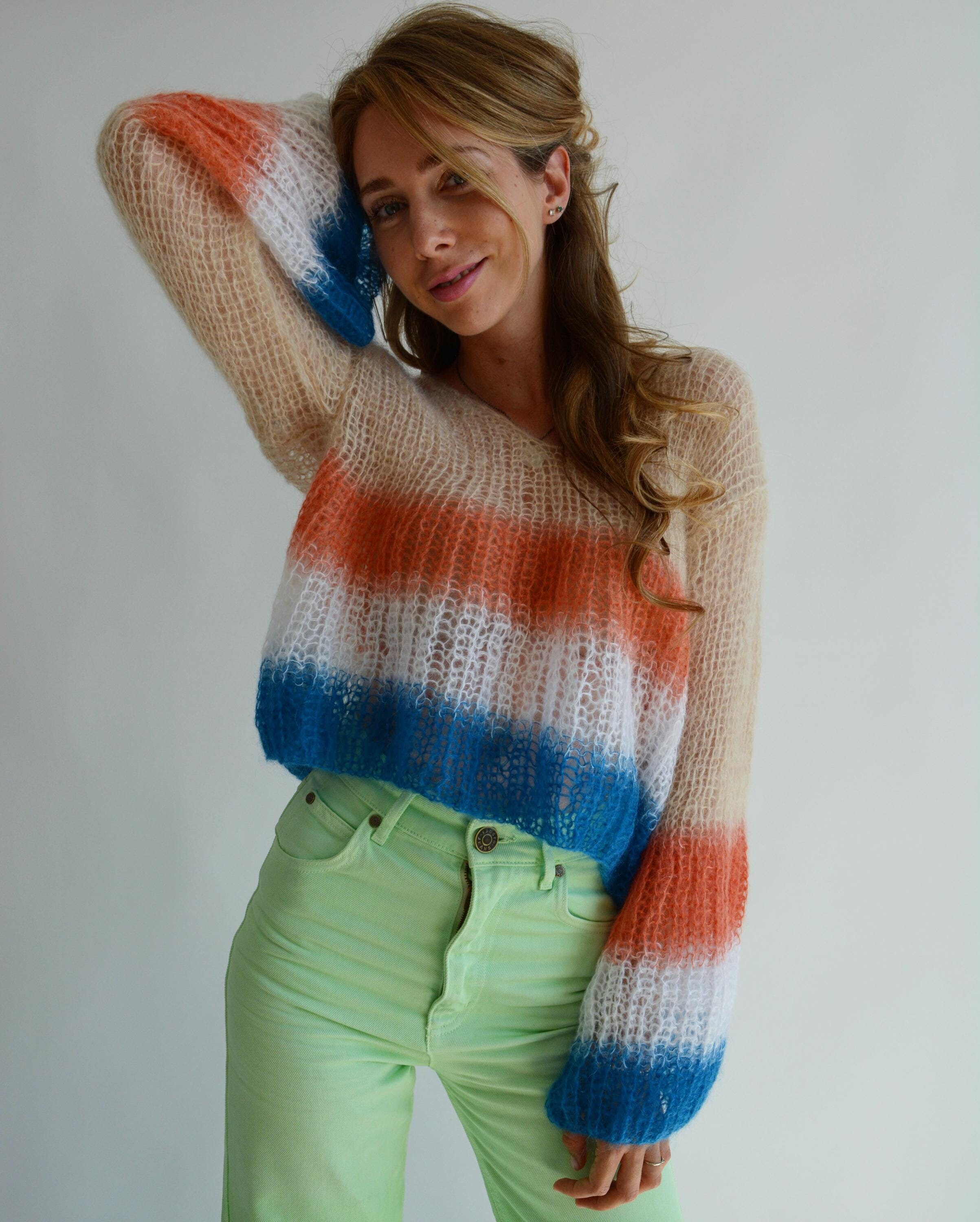 • Damen Kapuzenpulli Kurzarm - Leichter Strickpullover Mit Rundhalsausschnitt