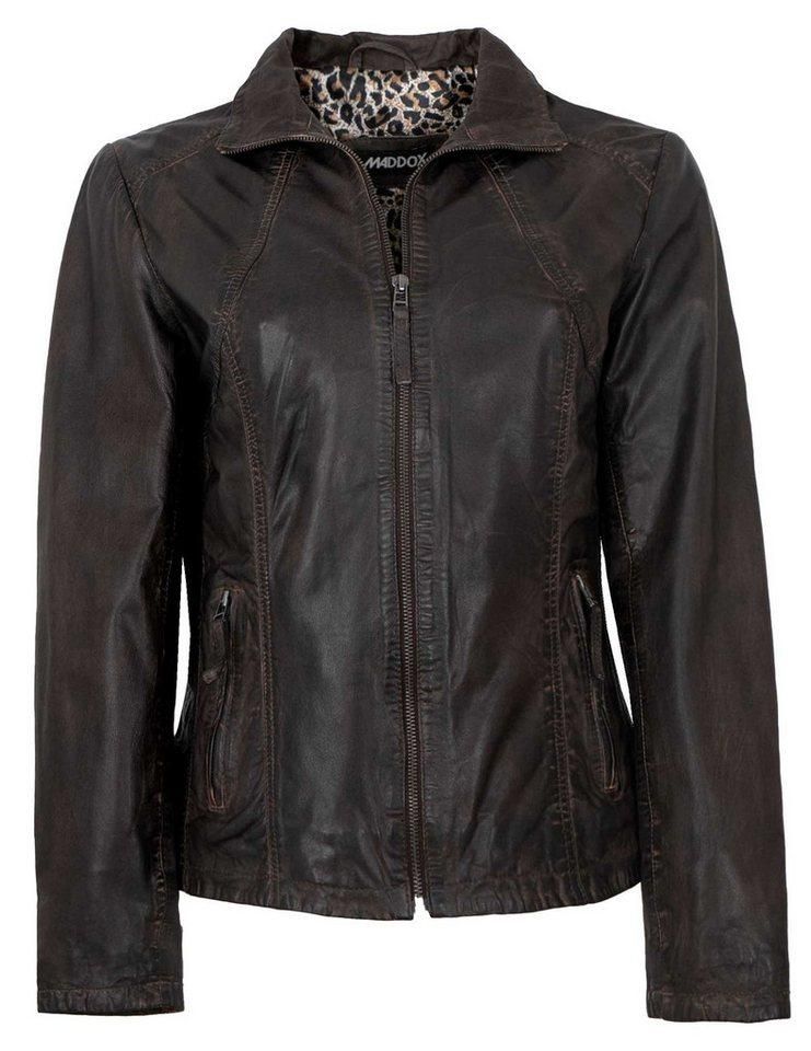 • Maddox Damen Ledermantel Lammnappa - Brauner Lammleder-Mantel Mit Kapuze