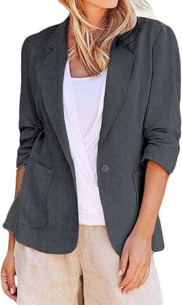 Dieser Leinen-Blazer ist dein neuer Allrounder für Office und Freizeit! Aus atmungsaktivem Leinen-Stoff - perfekt für Frühling und Sommer! Der schmale Schnitt schmeichelt deiner Figur und lässt dich schlanker wirken. Mit Knopfleiste und fallendem Revers - klassisch elegant und zeitlos! Perfekt fürs Büro, Business-Meetings oder besondere Anlässe wie Hochzeiten oder Abendveranstaltungen. Kombinierbar mit allem: Jeans, Röcken, Hosen, T-Shirts oder Blusen - geht immer! Maschinenwaschbar bei 30°C - super praktisch für den Alltag! Bitte Größentabelle checken vor dem Kauf - lieber eine Größe größer wenn du unsicher bist! Einfach ein Basics-Teil das in keinem Damen-Kleiderschrank fehlen sollte! Siehst du damit sofort gepflegt und stylisch aus - egal wo du hingehst! Einfach anziehen und strahlen!