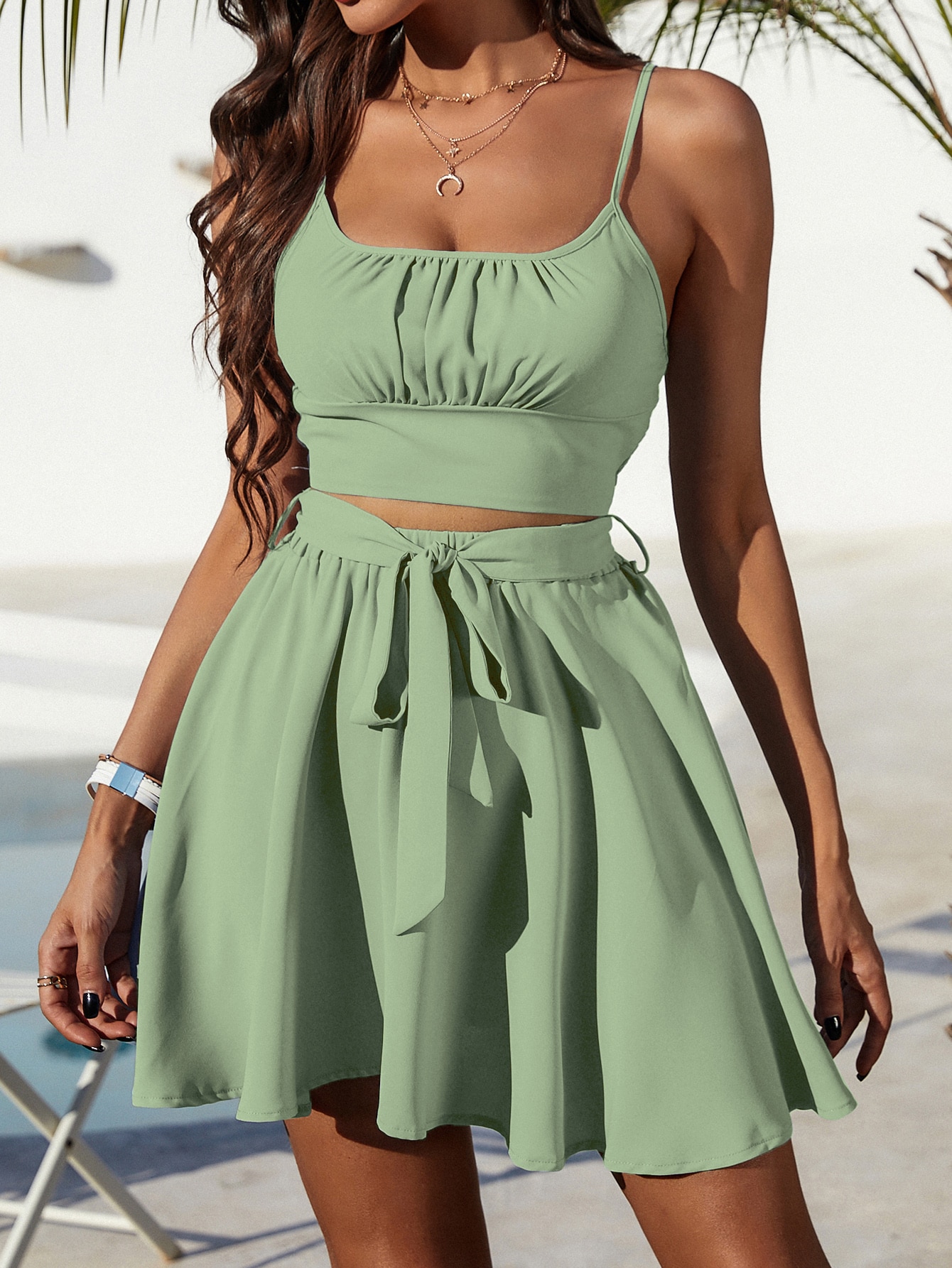 Boah, dieses Rock-Set ist ja der absolute Hingucker! Das 2-teilige Outfit im Y2K Style besteht aus einem ärmellosen Cami-Top und einem langen Maxirock mit wunderschönen Rüschen. Total feminin und perfekt für den Sommer! Das Material aus 100% Polyester ist super leicht und fließt elegant mit jeder Bewegung. Besonders stylisch: Der Spitzenbesatz und die gestuften Rüschen geben dem Outfit diesen besonderen Pep. Es gibt's in den Größen S, M und L - da findet jede die passende Größe. Das Top ist etwa 29-31cm lang, der Rock schlanke 107-109cm. Perfekt für Dates, Partys, Festivals oder einfach für den besonderen Tag im Büro. Kombinier es mit Sandalen oder Sneakers - es sieht einfach immer gut aus! Einfach anziehen und sich wie ein Model fühlen. Das Set kommt komplett mit Top und Rock - kein separates Suchen mehr. Absolute Empfehlung für alle Fashion-Lover!