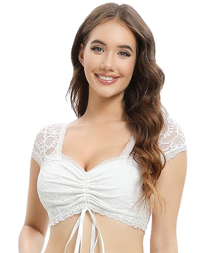 Dirndl Bluse Damen Mit Bayerischer Spitze - Baumwoll Bluse Für Oktoberfest & Trachtenevents