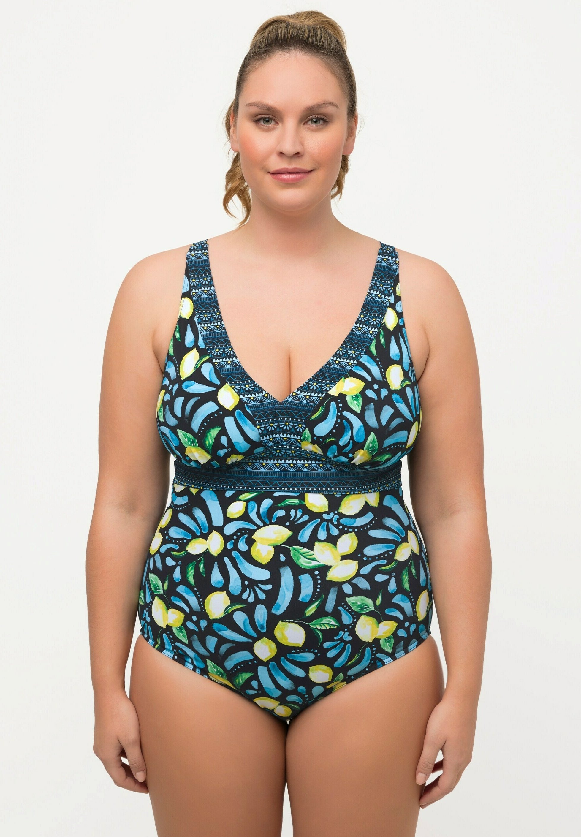 Beach-Babe gesucht? Dieser Ulla Popken Badeanzug in Größe 44 ist dein Ticket zum perfekten Strandoutfit! Mit weichen Körbchen für optimalen Halt und femininem V-Ausschnitt mit goldenem Perlenband. Die verstellbaren Träger sorgen für perfekten Sitz, und das höher geschnittene Design gibt dir Sicherheit. Aus weichem, elastischem Material, das sich deiner Figur anpasst. Das feine Strukturdesign und die Zierbänder verleihen dem schwarzen Badeanzug einen edlen Touch. OEKO-TEX zertifiziert - also hautverträglich und umweltfreundlich. Ob am Pool, Meer oder See - mit diesem Badeanzug fühlst du dich wohl und siehst dabei fantastisch aus. Perfekt für Übergrößen - endlich ein Badeanzug, der wirklich passt und schmeichelt! Ready für den Sommer?
