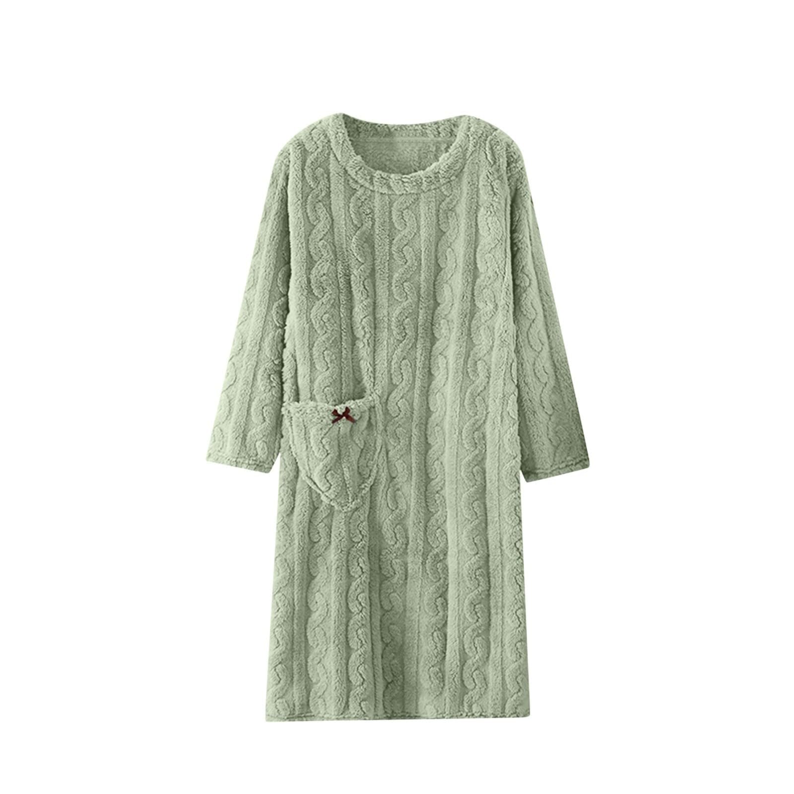 Damen Nachthemd Langarm Flanell - Warme Winter Schlafanzug Pyjama Kuschelig