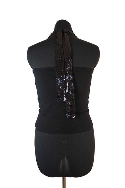Dieses Neckholder-Top mit funkelnden Pailletten ist ein echter Hingucker! Aus weicher, atmungsaktiver Baumwollmischung fühlt es sich angenehm auf der Haut an. Der dehnbare U-Ausschnitt und die integrierten Cups sorgen für perfekten Sitz und Komfort.