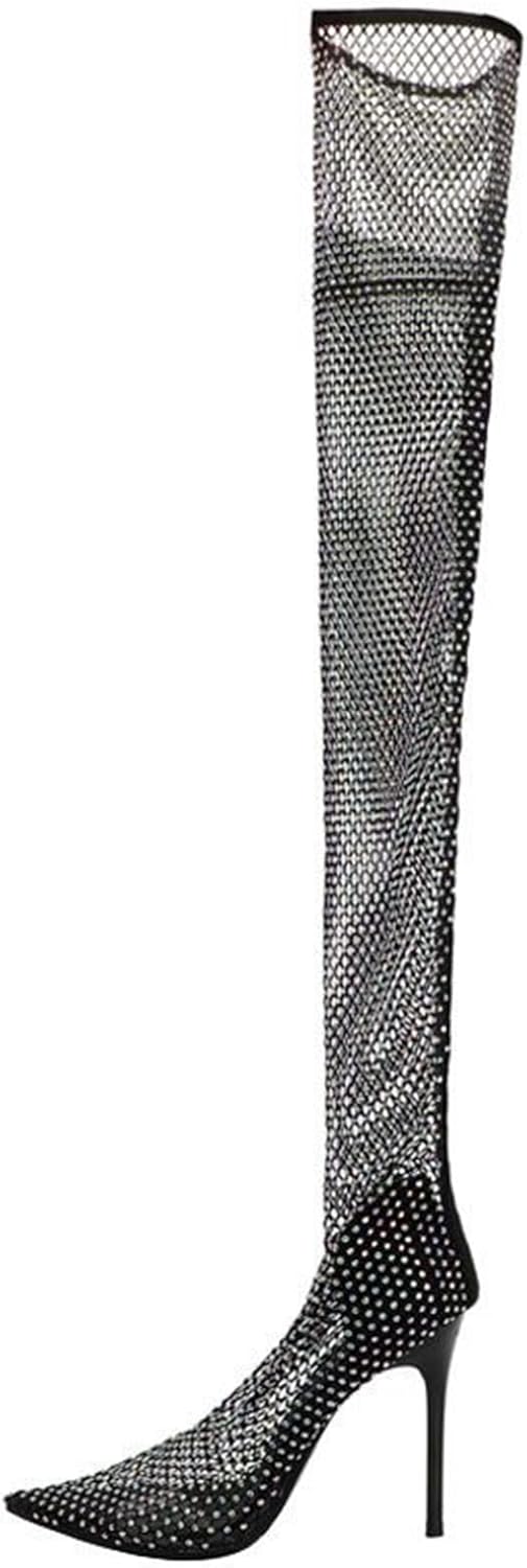 Suchst du nach einem echten Hingucker für besondere Anlässe? Diese Overknee-Stiefel für Damen machen dich garantiert zur Königin des Abends! Mit funkelnden Strassverzierungen und einem 4,3-Zoll-Stilettoabsatz streckst du deine Beine optisch und wirkst gleich viel schlanker und größer. Die spitze Zehenpartie verleiht dem Stiefel eine klassische, aber trendige Note. Das dehnbare Material macht das An- und Ausziehen super einfach - kein lästiges Herumgefummel! Die rutschfeste und verschleißfeste Gummisohle gibt dir sicheren Halt bei jedem Schritt. Perfekt für Partys, Hochzeiten, den Abschlussball oder auch mal für einen besonderen Tag im Büro. Kombiniere die Stiefel mit Hotpants, Röcken oder Anzügen - du wirst garantiert Komplimente kassieren! Das atmungsaktive Futter sorgt für ein angenehmes Tragegefühl, auch wenn du länger unterwegs bist. Hol dir diesen Traum in Schuhform und fühl dich sexy und selbstbewusst!