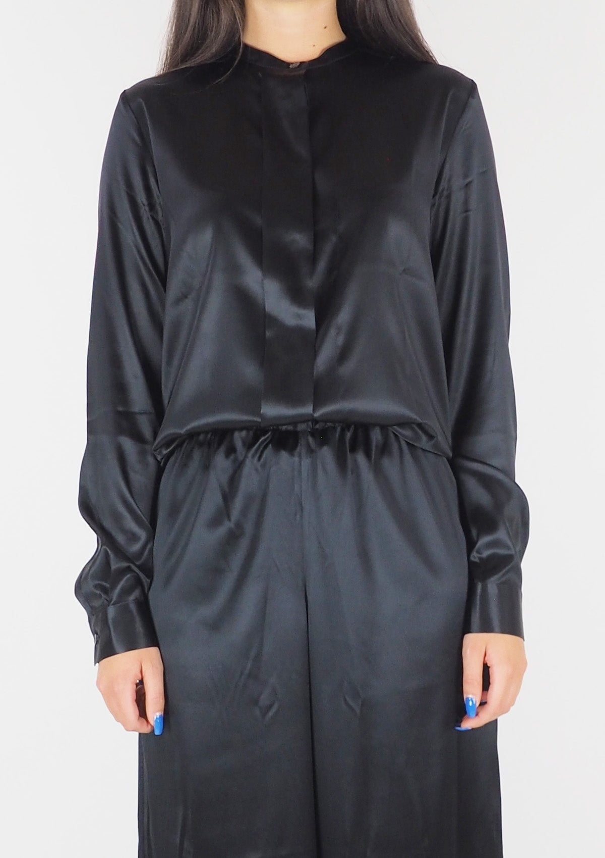 Diese Satin-Bluse fühlt sich an wie reine Seide - ist aber viel pflegeleichter! Der elegante Wasserfallkragen schmeichelt jeder Figur und die gerafften Ärmel mit Knopfmanschetten sehen einfach stylisch aus.\n\nPerfekt fürs Büro, romantische Dinner oder einfach mal was Besonderes im Alltag. Kombinierbar mit Jeans, Röcken oder Anzugshosen - immer ein gepflegter Look. Aus weichem, glänzendem Satin der sich traumhaft anfühlt.\n\nEinfach in der Pflege: Kalte Maschinenwäsche und schon sieht sie wieder aus wie neu. Dein neuer Liebling für Herbst und Winter!\n• Material: Seidenähnlicher Satin\n• Design: Wasserfallkragen\n• Langarm mit Manschetten\n• Pflegeleicht\n• Vielseitig kombinierbar