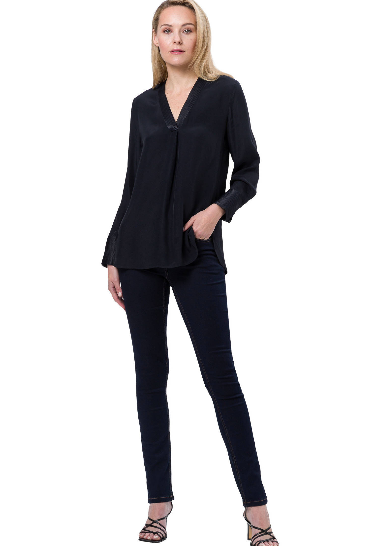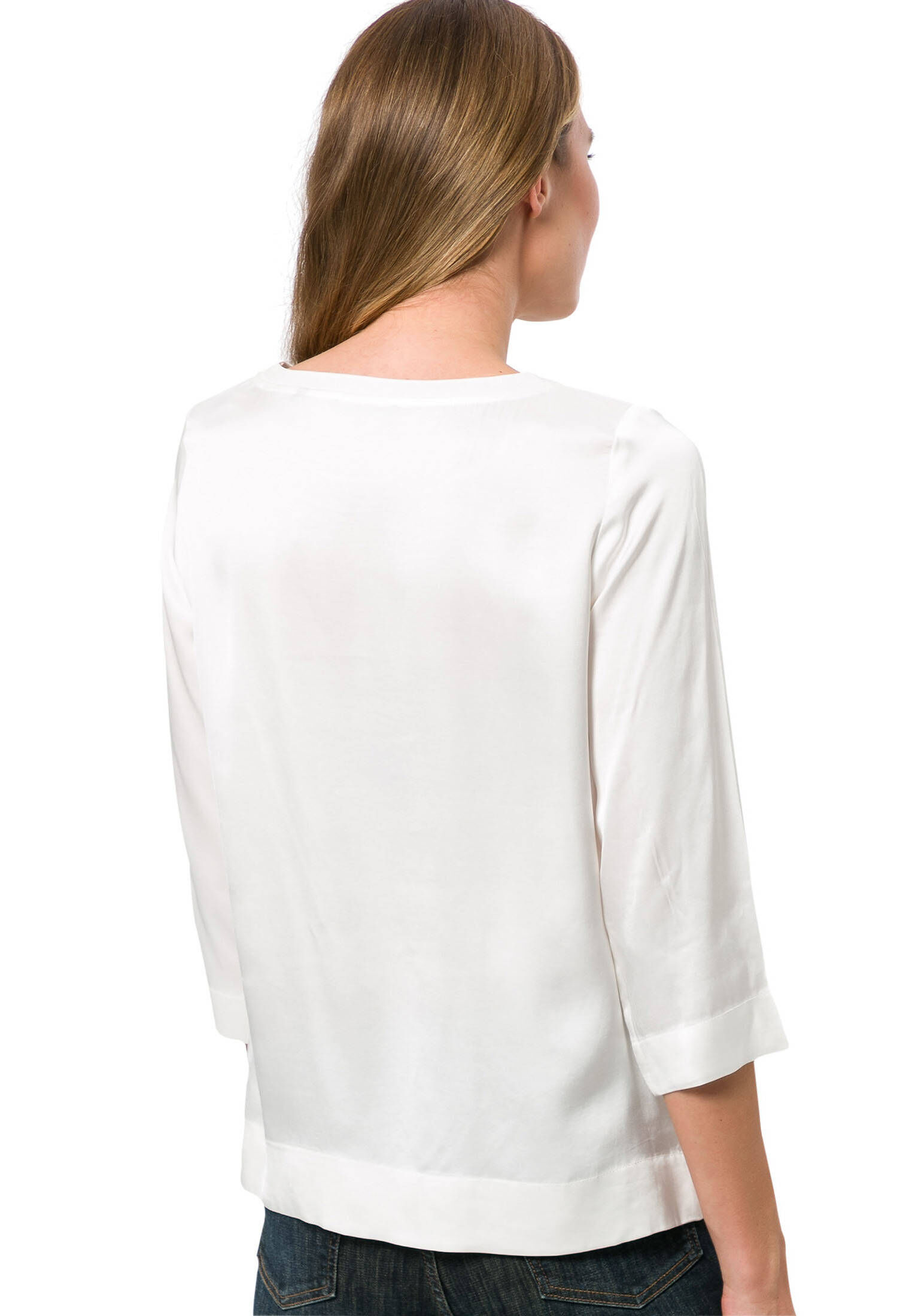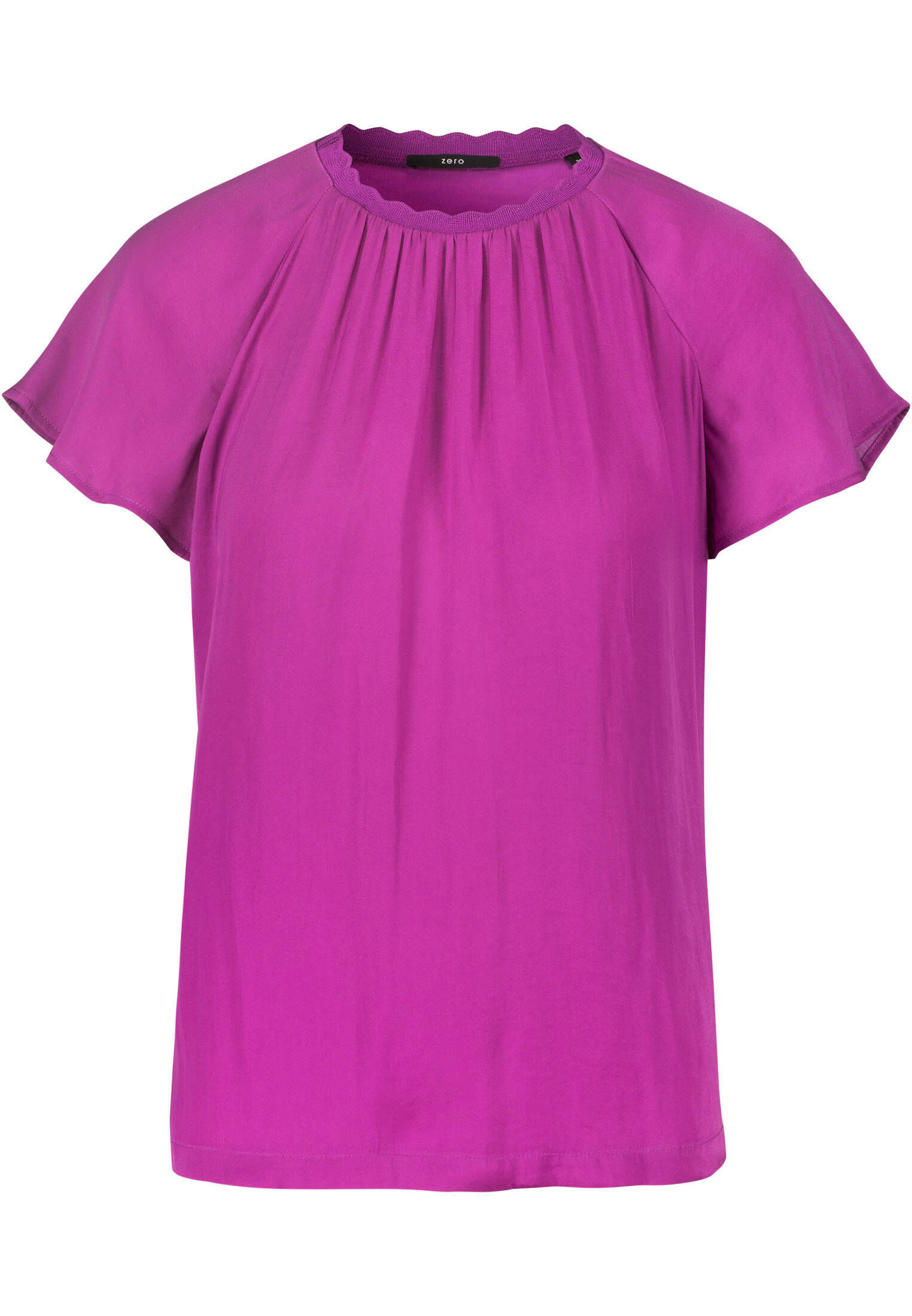 Diese zero Satinbluse ist ein absolutes Highlight! Figurumspielende Passform mit schicken Falten - sitzt einfach perfekt. Langarm und mit elegantem Rundhals-Ausschnitt.