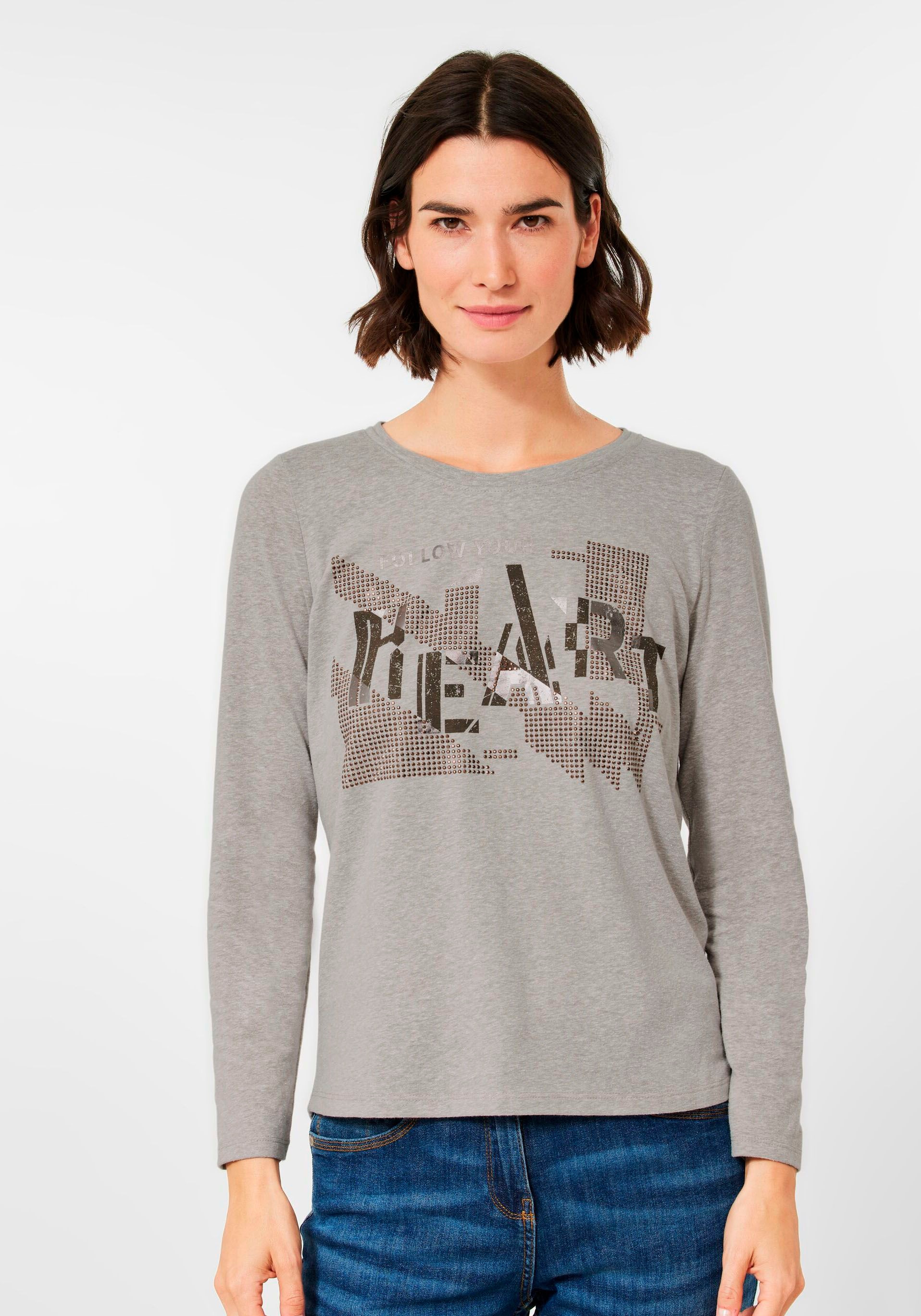 Funkelnd schön für den Alltag! Dieses Cecil Shirt für Damen hat ein glitzerndes Motiv aus Schmucksteinen und bringt glamouröse Akzente in deinen Look. Mit bequemem Rundhalsausschnitt und 3/4-Ärmeln. Aus weichem Baumwoll-Modalmix - super trageangenehm. Bei Größe M: Brustweite 54,5cm, Armlänge 47cm, Länge 64cm. Perfekt für feminine Casual-Outfits - ob mit Jeans, Rock oder Leggings. Einfach anziehen und strahlen - dieses Shirt macht jede Frau zum Star!