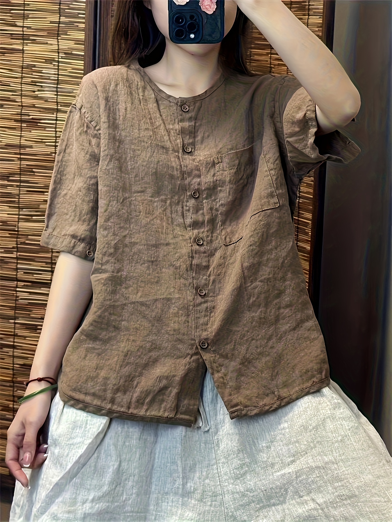 Leicht, luftig und super bequem! Diese Leinenbluse für Damen ist der perfekte Begleiter für den Sommer. Aus der angenehmen Mischung von Leinen und Baumwolle gefertigt, fühlt sie sich herrlich weich auf der Haut an. Mit langen Ärmeln und tunikaartigem Schnitt auch in großen Größen verfügbar. Der klassische Kragen und die stabilen Knöpfe sorgen für einen gepflegten Look. Perfekt kombinierbar mit Jeans, Röcken oder Hosen - ob fürs Büro, Freizeit oder besondere Anlässe. Die doppelt genähten Nähte an den Stresspunkten garantieren Langlebigkeit, auch in Plus Size. Pflegeleicht und knitterarm - einfach in der Maschine waschbar und kaum Bügeln nötig. Ein zeitloses Basic, das du das ganze Jahr über tragen kannst. Solo, als Layer unter einer Jacke oder offen über einem Top - diese Bluse ist einfach unverwüstlich stylisch!