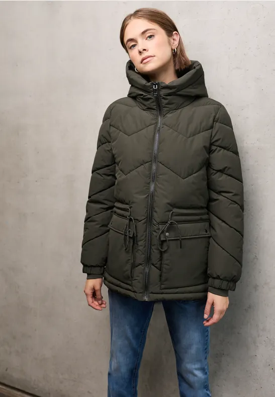 Street One Studio Damen Steppjacke Mit Kapuze - Zick-Zack Design Tailliert