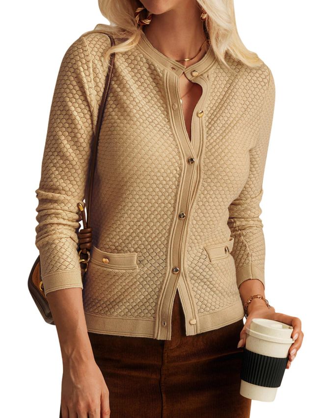 Stylish durch den Herbst! 🍂 Diese elegante Strickjacke von GRACE KARIN wird Ihr neuer Lieblingsbegleiter! Der kurze Schnitt sitzt perfekt und der weiche Rundhals-Ausschnitt ist super schmeichelhaft. Mit der praktischen Knopfleiste können Sie die Jacke ganz nach Belieben offen oder geschlossen tragen. Aus 98% Polyacryl und 2% Polyester ist sie nicht nur super weich, sondern auch pflegeleicht - einfach in die Waschmaschine und fertig! Perfekt fürs Büro, für entspannte Tage oder einen Stadtbummel. Kombinieren Sie sie mit Jeans und Stiefeln für einen lässigen Look oder mit einem Rock für elegante Anlässe. Die langen Ärmel schützen vor kühler Brise und die vielen verfügbaren Farben garantieren, dass für jeden Geschmack etwas dabei ist! Einfach anziehen und sich wohlfühlen - so einfach kann Mode sein! Diese Strickjacke ist ein echter Allrounder, der in keiner Garderobe fehlen sollte. Einfach bestellen, anziehen und den Komfort genießen! 👚