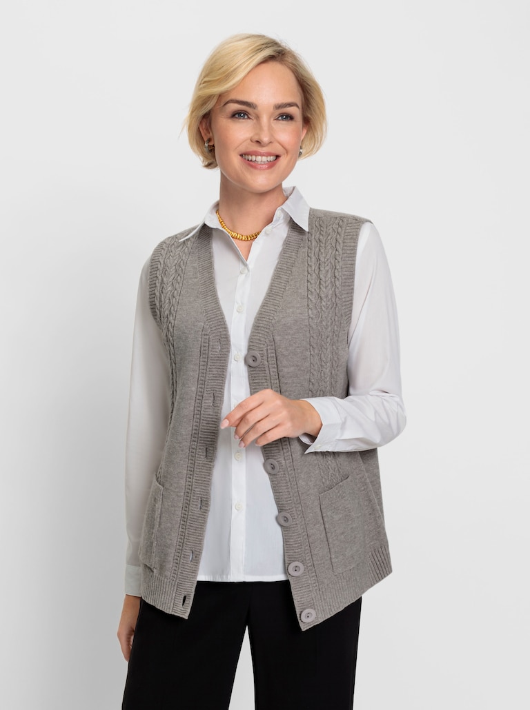 Damen, diese Strickweste ist ein echter Allrounder für euren Kleiderschrank! Lockere Passform - super bequem und schmeichelhaft! Mit trendy Knopfdesign - sieht einfach stylisch aus! Aus Polyester - mäßig elastisch, passt sich gut an! In Grau, Schwarz und Beige - klassische Farben die zu allem passen! Für Frühling, Sommer, Herbst und Winter - ganzjährig tragbare! Perfekt für Alltag, Urlaub oder gemütliche Abende - vielseitig kombinierbar! Einfach über T-Shirt oder Bluse ziehen - fertig ist der Look! Bequem wie ein Cardigan aber stylischer! Einfach anziehen und wohlfühlen! Für alle, die es lässig und modisch mögen.