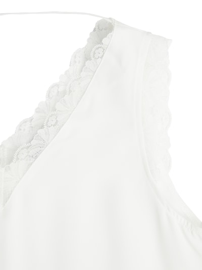 In Elfenbein-Weiß ist es vielseitig kombinierbar. Unter einer Jacke oder solo getragen - es passt immer. Die durchscheinenden Spitzenelemente sorgen für einen Hauch von Verspieltheit.