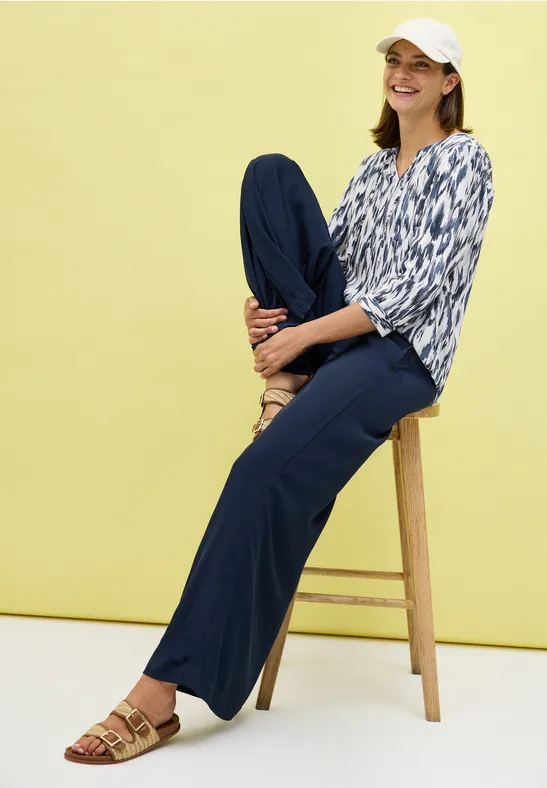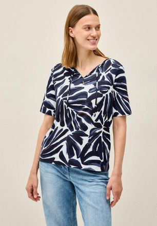 Stylish, bequem und voller Individualität - die gemusterte Tunika von Cecil ist ein echter Allrounder für deinen Kleiderschrank! Mit einem grafischen Print setzt diese Bluse modische Akzente und sorgt für Aufmerksamkeit. Aus weicher Viskose gefertigt, fühlt sie sich angenehm auf der Haut an und liegt perfekt. Der Split-Neck-Ausschnitt mit dekorativer Knopfleiste verleiht der Tunika einen besonderen Touch, während die langen Ärmel mit elastischen Bündchen für optimalen Komfort sorgen. Mit einer unteren Weite von ca. 58,5cm (Größe M) bietet sie genug Bewegungsfreiheit und sitzt nicht zu eng. Perfekt für den Büroalltag, einen gemütlichen Tag in der Stadt oder besondere Anlässe. Kombiniere sie mit Jeans, Leggings oder einem Rock - diese Tunika passt zu allem! Ein Kleidungsstück, das nicht nur gut aussieht, sondern sich auch super anfühlt. Für alle, die es lässig, aber trotzdem stylisch mögen!