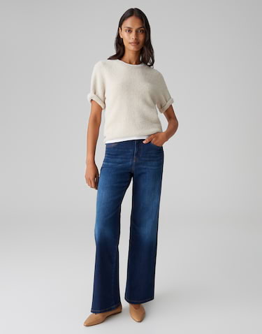 Style-Queen, diese Wide Leg Jeans von OPUS ist total im Trend! Mit weitem, geradem Beinverlauf und Used-Look - sieht super lässig aus. Der 5-Pocket-Stil ist klassisch, aber der Schnitt absolut modern. Mit Powerstretch für maximalen Komfort - bewegt sich mit dir und zwackt nirgends. Mid-Rise sitzt perfekt an der Taille. Aus hochwertigem Denim, der sich angenehm anfühlt und lange hält. Perfekt zu Sneakern, Stiefeletten oder Sandalen. Für alle, die es bequem und stylisch mögen. Einfach anziehen und sich wohlfühlen - der Hit für deine Freizeit!
