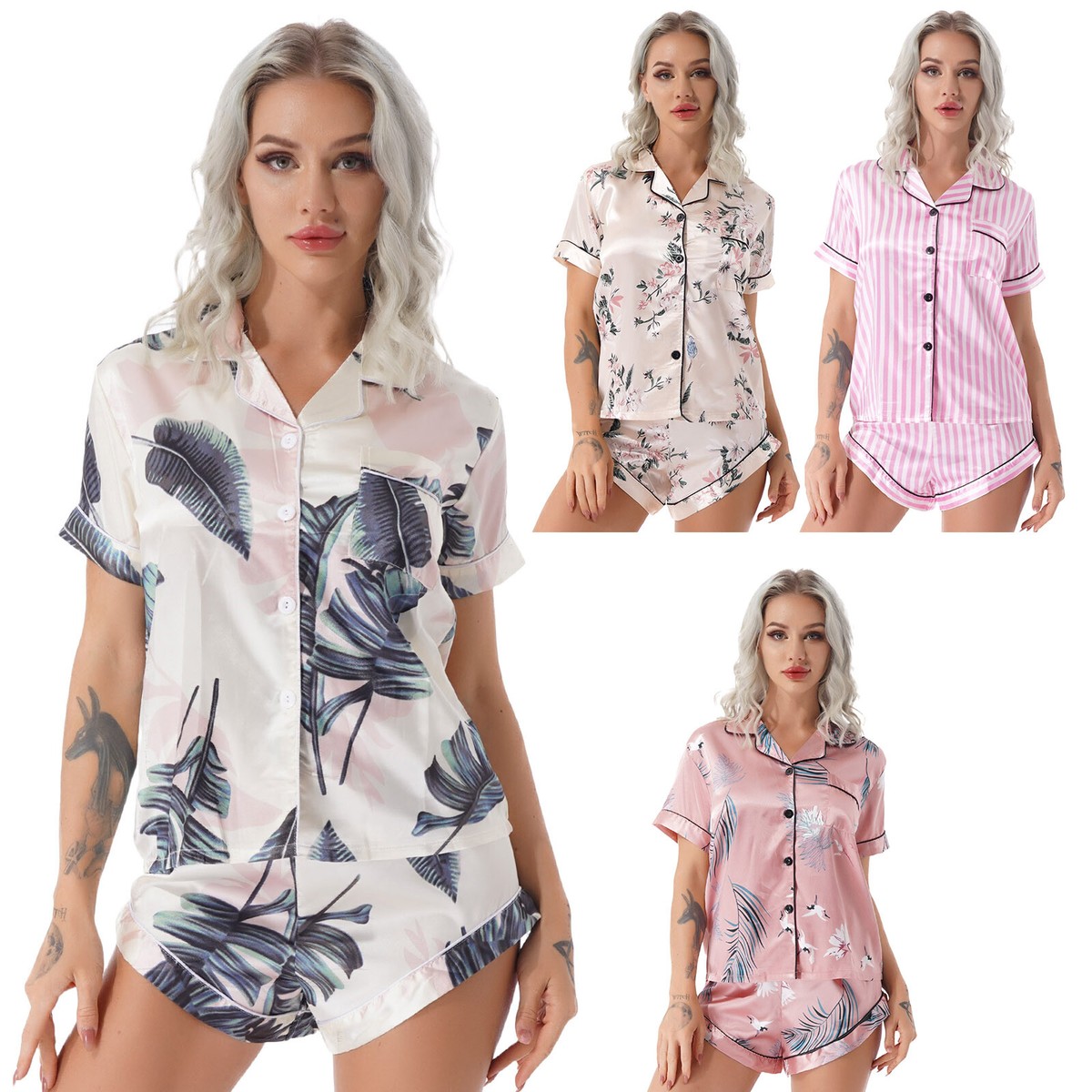 So viel Luxus für wenig Geld! Dieses 4-teilige Satin-Pyjama-Set für Damen ist pure Bequemlichkeit. Enthalten sind ein Langarmshirt, eine Hose, ein Morgenmantel und Shorts - alles aus weichem, dehnbarem Satin-Stoff. Der lockere Schnitt gibt dir maximale Bewegungsfreiheit, egal ob du schläfst, auf dem Sofa liegst oder leichte Yoga-Übungen machst. Das atmungsaktive Material ist hautfreundlich und hält dich angenehm warm, wenn's mal kühler wird. Besonders praktisch: Die Pyjamahose hat einen elastischen Bund und gerade Beine - super bequem! In vielen verschiedenen Farben und Druckmustern erhältlich, da findet jede ihren Lieblingsstil. Ein ideales Geschenk für Mutter, Freundin, Schwester oder einfach für dich selbst! Tipp: Vor dem Kauf die Größentabelle checken. Maschinenwäsche in kaltem Wasser - nichts verzieht sich oder verblasst. Einfach aufhängen zum Trocknen, nicht bleichen und nicht zu heiß bügeln.