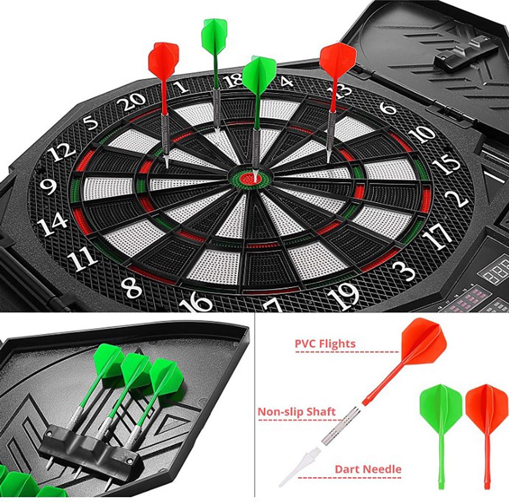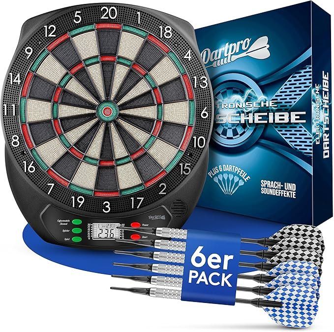 Darts spielen war noch nie so vielseitig! Diese elektronische Soft-Dartscheibe von GDHKDDFL bringt Spaß für die ganze Familie - ob Kinder oder Erwachsene. Mit satten 28 verschiedenen Spielmodi wird es garantiert nicht langweilig. Die Scheibe hat einen Zieldurchmesser von 15,5 Zoll (ca. 39cm) und die Gesamtmaße von 58x46,5x2,5cm sind perfekt für Spielzimmer, Büro oder Partykeller. Im Lieferumfang sind 6 Steeldarts enthalten - also genug für mehrere Spieler. Die robusten Segmente halten auch härteren Würfen stand ohne kaputt zu gehen. Angetrieben wird das Ganze mit einem 5V1A Netzteil - einfach einstecken und los geht's! Perfekt für Zuhause, Kneipen, Bars oder Clubs. Ob zu Weihnachten, Geburtstagen oder einfach so - dieses Dart-Set bietet stundenlangen Spielspaß für Groß und Klein. Einfach aufhängen oder hinstellen und die Dart-Party kann beginnen!