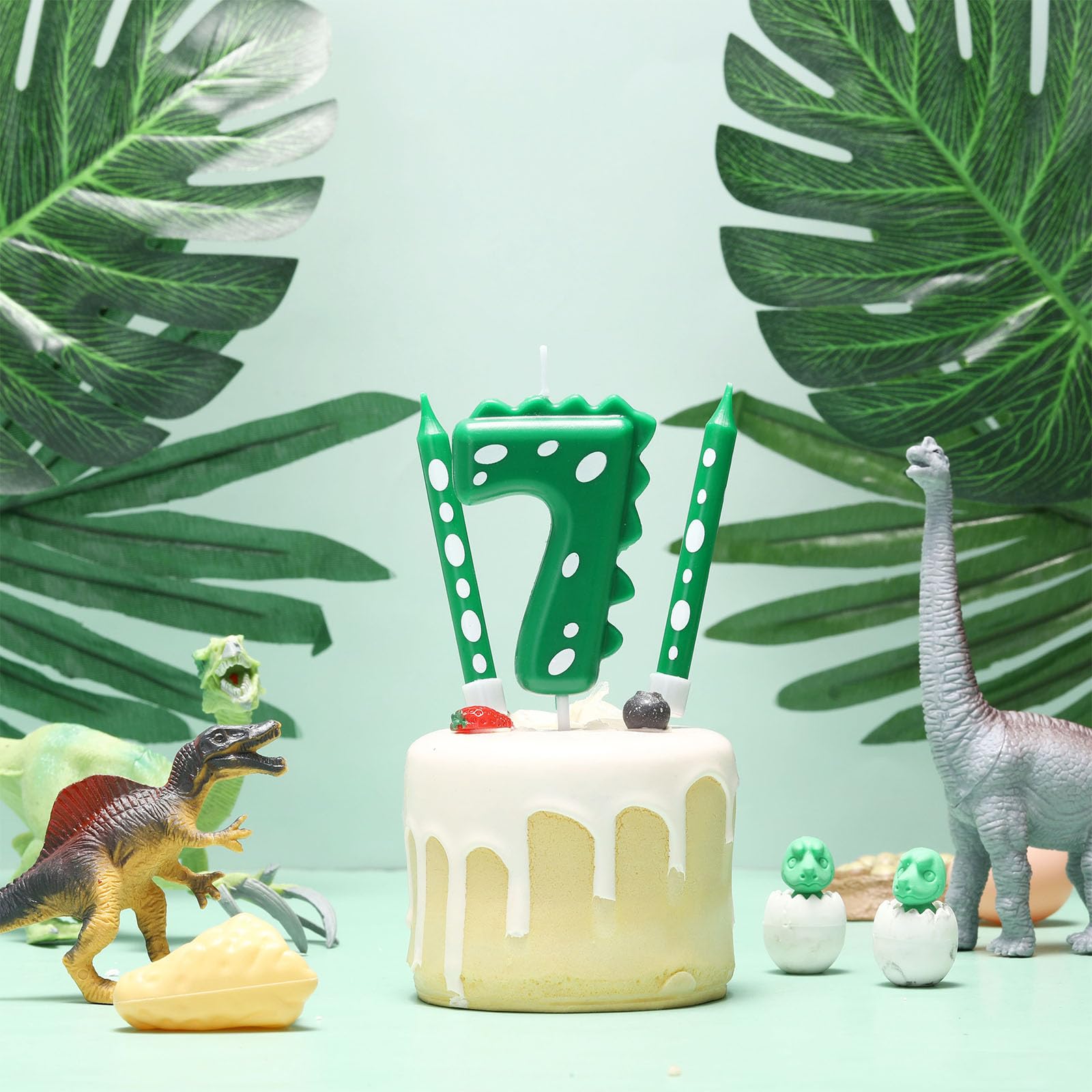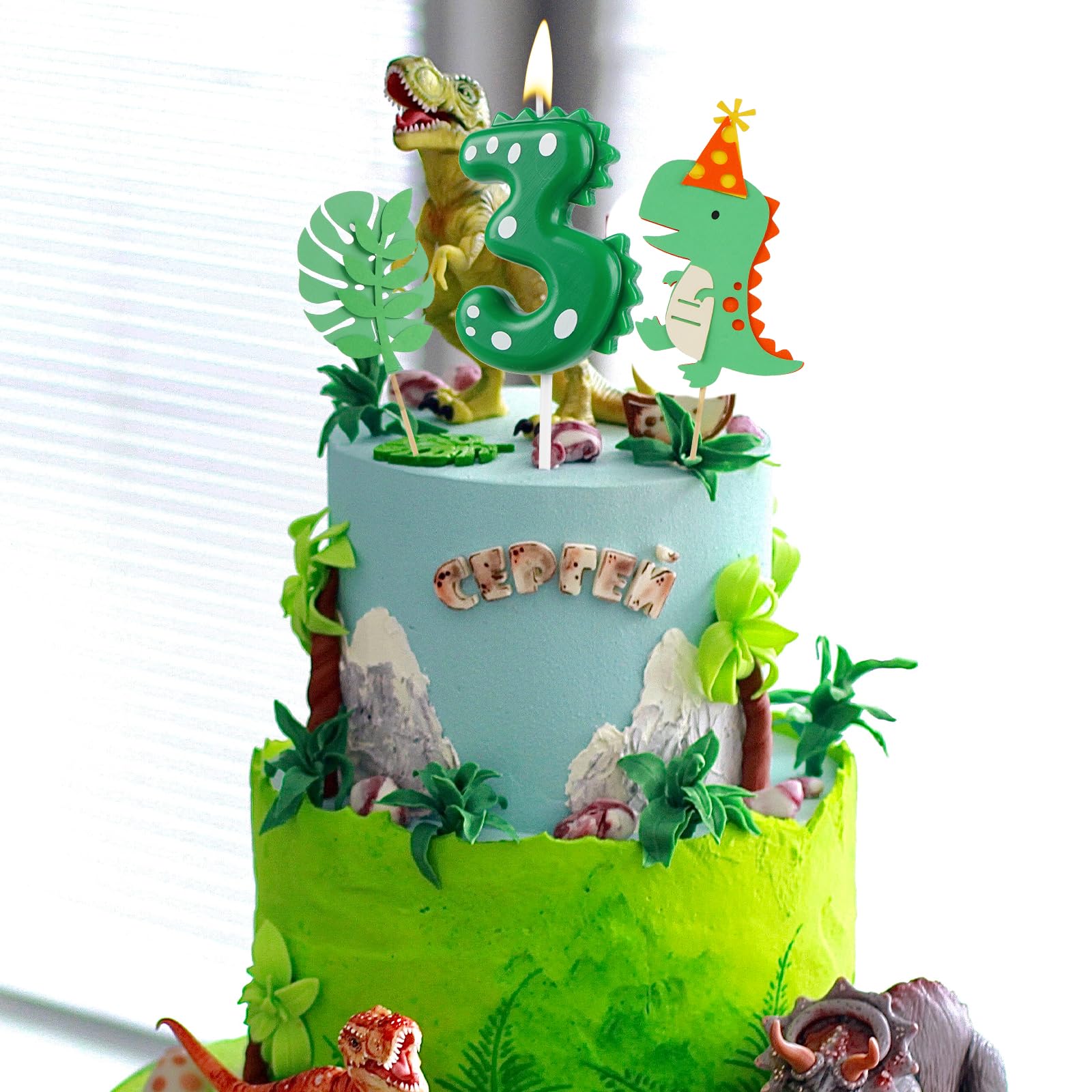• DazzJoy Dino Geburtstagskerze Zahl 3 - Grüne Dinosaurier Kerze Für Kindergeburtstag