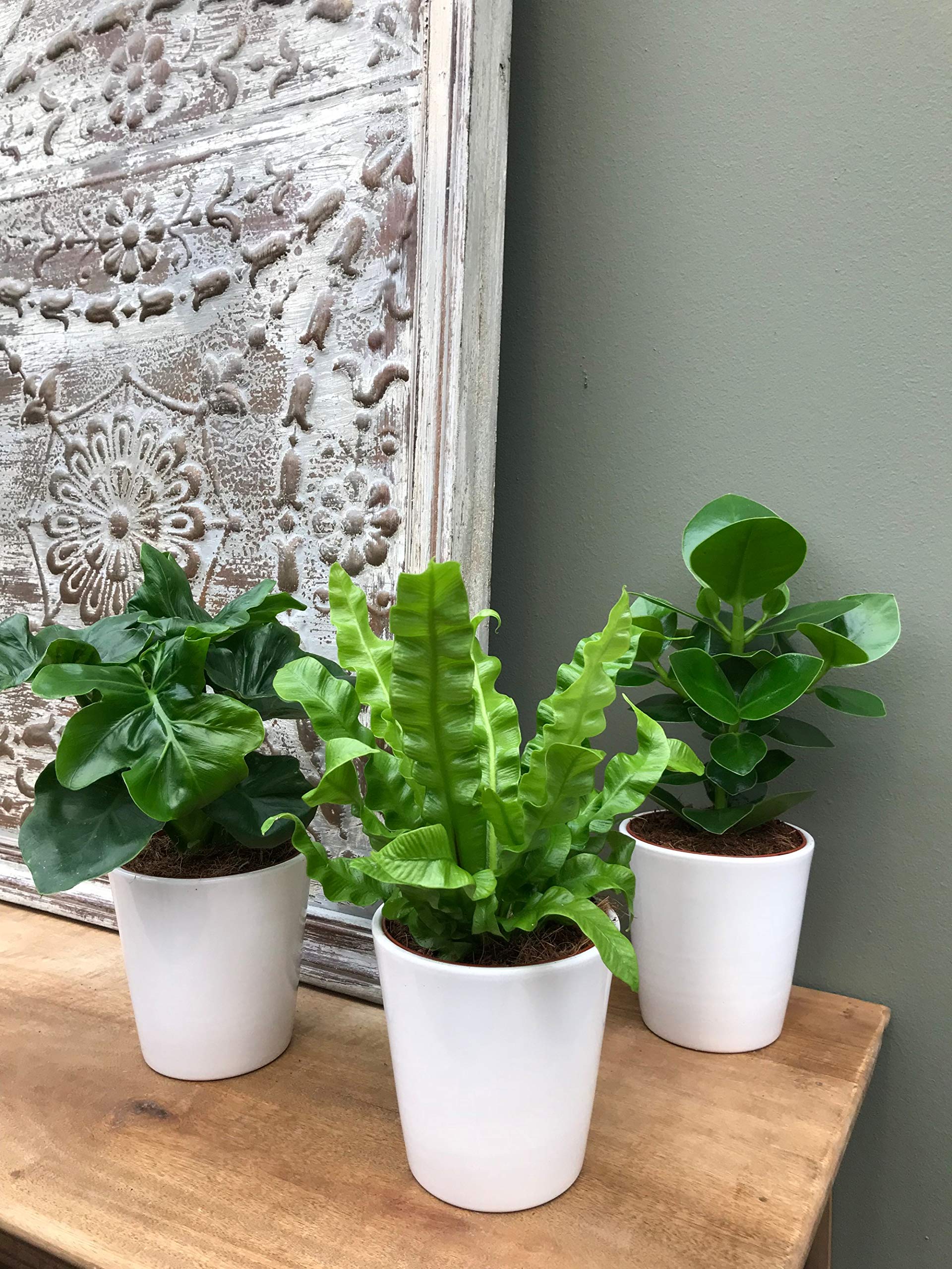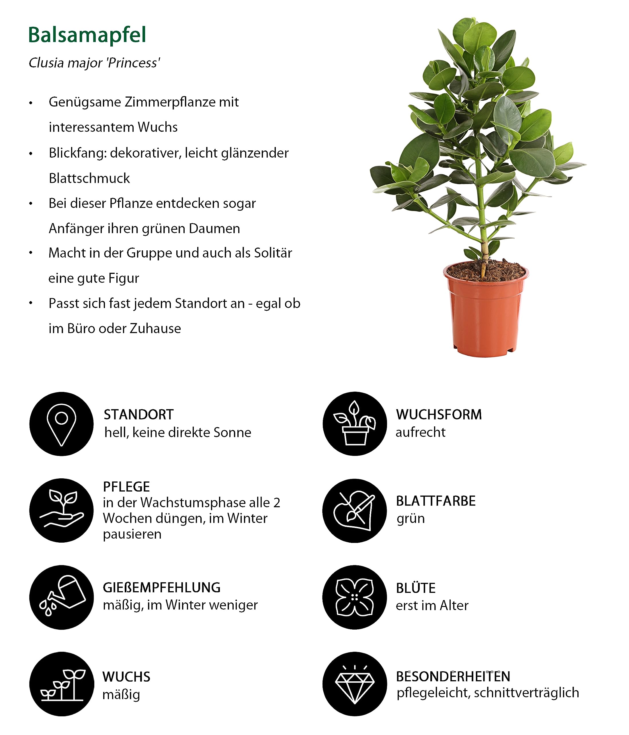 Grün im Bad - warum eigentlich nicht? Dieses Set mit Balsamapfel, Bergpalme und Streifenfarn ist perfekt für dein Badezimmer. Die Pflanzen lieben die höhere Luftfeuchtigkeit und sorgen für ein besseres Raumklima. Geliefert werden sie in 12 cm Töpfen, zwischen 25-40 cm hoch. Sie stehen am liebsten im Halbschatten und sind immergrün - also ganzjährig schön. Perfekt für alle, die auch im Bad nicht auf Natur verzichten wollen. Die Pflanzen sind nicht nur hübsch anzusehen, sondern reduzieren auch die Schimmelbildung. Einfach aufstellen und genießen!