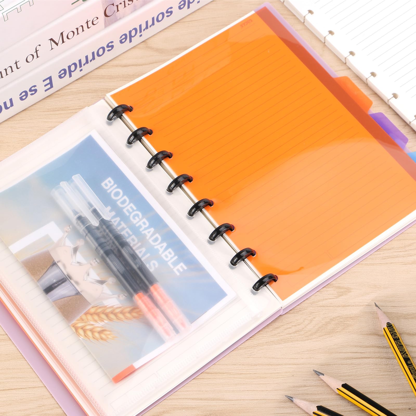 Hey, hast du genug von chaotischen Notizbüchern? Diese 5 bunten Registerteiler sind total praktisch für deine Discbound-Ordner! Maße: 28x23 cm, aus robustem PP-Material. Super fürs Büro oder Homeoffice - damit findest du alles sofort. Jeder Teiler hat einen beschriftbaren Bereich, wo du deine Kategorien eintragen kannst. Ob für Meetings, Planung oder Projekte - endlich Ordnung im Chaos! Und das Beste: Die Teiler sind wasserabweisend und reißen nicht so schnell. Passen in die meisten Discbound-Systeme und machen einfach mehr Spaß als langweilige weiße Register. Perfekt für alle, die gerne organisiert sind!