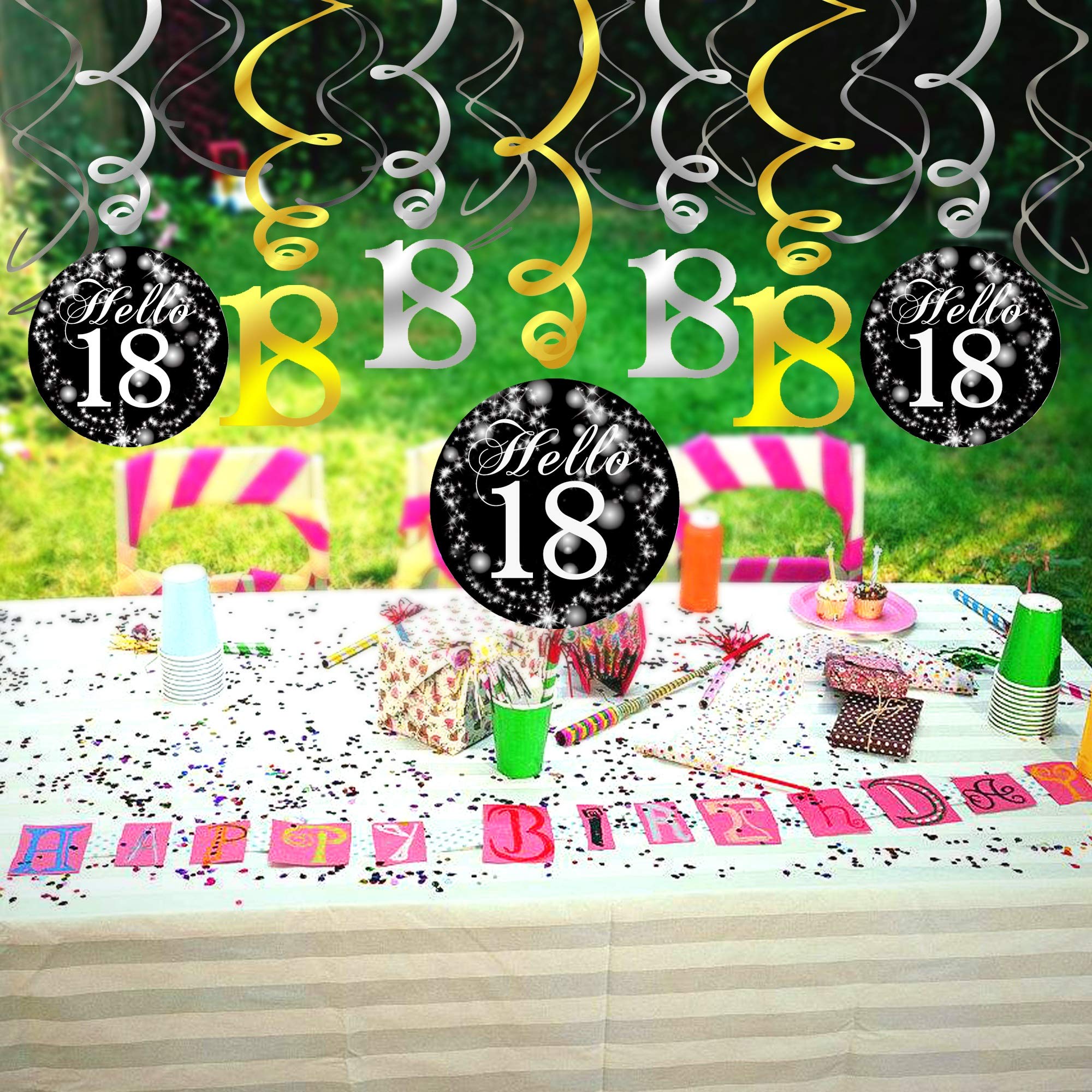 Mega-Deko für den 18.! Dieses komplett Set in schwarz-gold macht jede Volljährigkeitsfeier unvergesslich. Enthalten sind 18 individuelle Fahnen (12x25 cm), auf die du Fotos kleben kannst - perfekt, um die Entwicklung vom Baby bis zum Erwachsenen zu zeigen. Dazu kommen 6 elegante Spiralanhänger (3 schwarz, 3 gold), die sich zu 70 cm Länge entfalten und richtig Party-Feeling bringen. Alles ist aus hochwertigem Karton und PVC gefertigt, also stabil und sogar wiederverwendbar. Die Montage ist super einfach: Mit der beiliegenden Baumwollschnur (3 m), Klebepunkten und der praktischen Nadel hast du die Girlande im Nu aufgehängt. Ob im Wohnzimmer, Partykeller oder als Instagram-Hintergrund - diese Deko sieht einfach klasse aus und macht Fotos richtig professionell. Ein absolut perfektes Geschenk für jeden, der volljährig wird und diesen besonderen Tag gebührend feiern möchte!