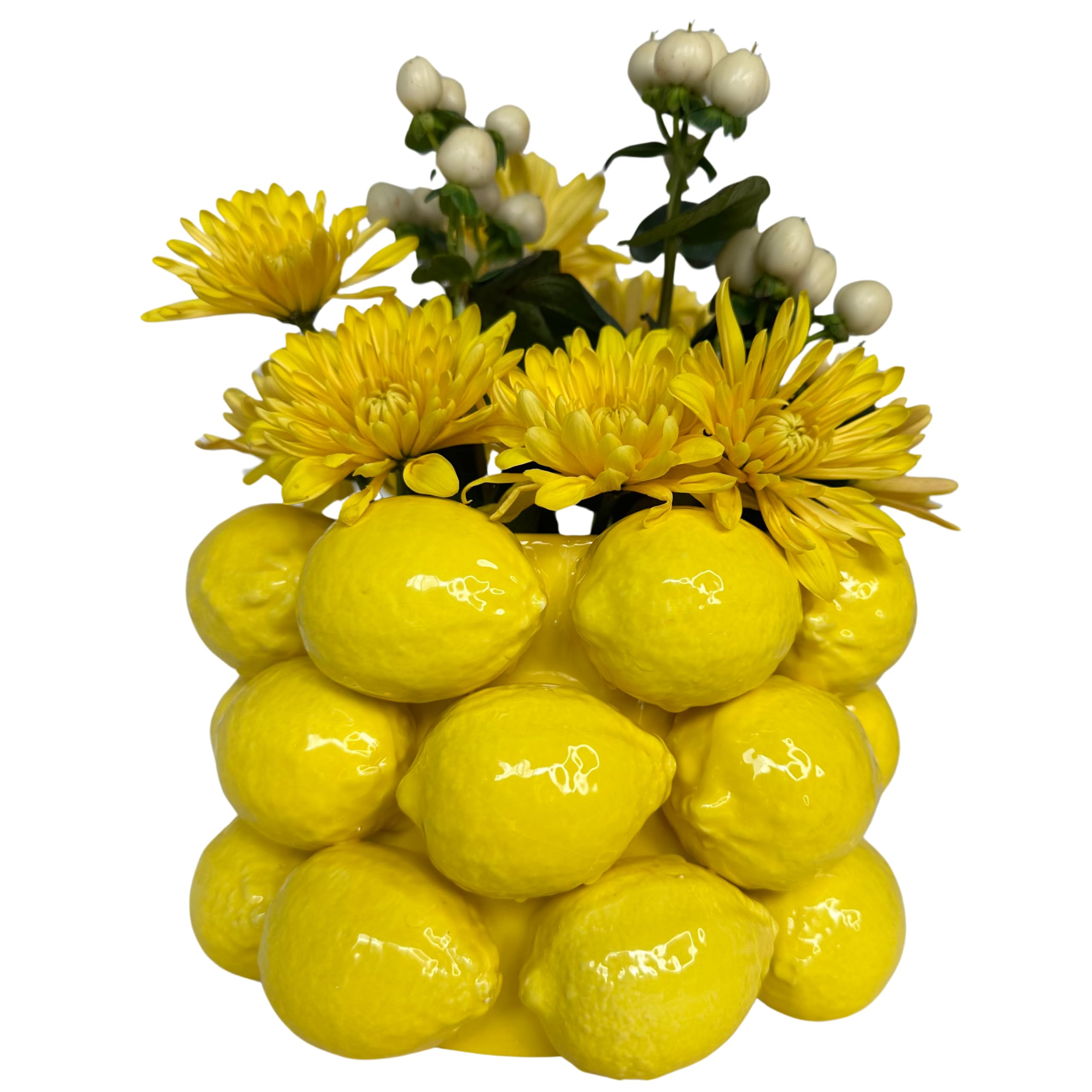 Diese bezaubernde Zitronenvase bringt sommerliche Frische in dein Zuhause! Aus hochwertiger Keramik gefertigt, ist die Vase wasserdicht und perfekt für frische oder Trockenblumen. Mit den Maßen 15 x 10 cm passt sie super auf jeden Esstisch, Sideboard oder deine Fensterbank. Das lebendige Gelb sorgt für gute Laune und verleiht jedem Raum einen Hauch von Eleganz. Ideal für sommerliche Partys, Gartenfeiern oder einfach als Deko-Highlight in der Küche. Die Vase ist aus temperaturbeständiger Dolomitkeramik gemacht und damit besonders robust. Ob alleine als Eyecatcher oder kombiniert mit anderen Deko-Elementen - diese Vase macht immer eine gute Figur! Perfekt für moderne, landhaus oder mediterrane Einrichtungsstile. Ein echter Hingucker, der deine Gäste garantiert begeistert!