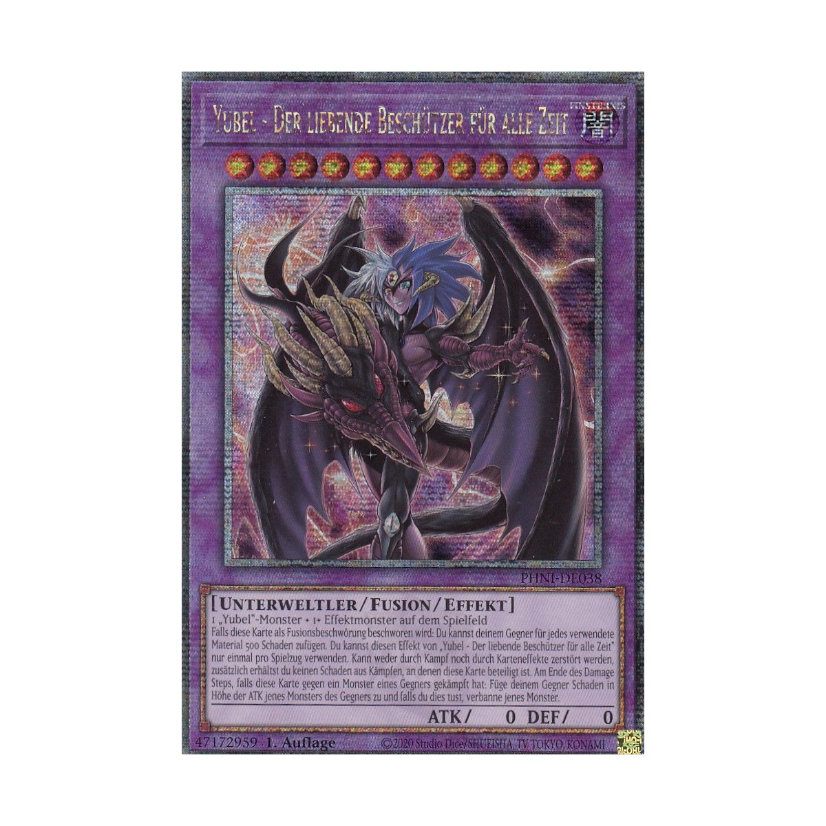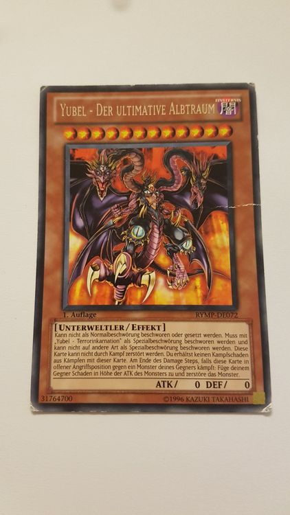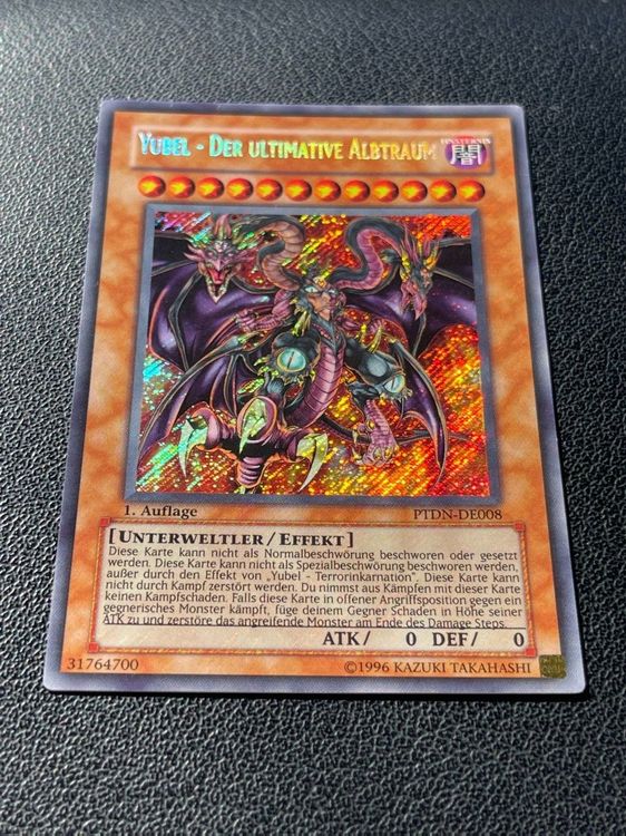 Alter, das ist ja mal eine richtig fette Karte! Die Yubel - Der liebende Beschützer für alle Zeit in Starlight Rare - einfach nur krass für jede Yugioh-Sammlung. Ist ja aus dem 2025 Mega-Pack Tin und dazu noch erste Auflage auf Deutsch! Was die Karte so besonders macht? Sie ist ein Effekt Fusionsmonster und hat richtig mächtige Eigenschaften: Kann weder durch Kampf noch durch Karteneffekte zerstört werden und du kriegst keinen Schaden aus Kämpfen, an denen sie beteiligt ist. Noch besser: Beim Fusionsbeschwören fügst du deinem Gegner für jedes verwendete Material 500 Schaden zu - richtig fies also! Und das ist noch nicht alles: Am Ende des Damage Steps, wenn sie gegen ein Monster des Gegners gekämpft hat, bannt sie das Monster und fügt zusätzlich Schaden in Höhe von dessen ATK zu. Aber wart's ab - dazu gibt's noch das exklusive RC-Fieldcenter für deine Turniere, damit du immer den perfekten Überblick über dein Spielfeld hast. Der Zustand der Karte ist Near Mint oder besser, also top Qualität. Die Verpackung ist übrigens extra knicksicher, damit auch wirklich nichts beim Transport passiert. Seit 2018 kennen wir uns mit Sammelkarten aus - da kannst du dir sicher sein, dass du hier ein Premium-Produkt bekommst. Ob fürs Turnier oder einfach nur für die Sammlung - mit dieser Yubel machst du nichts falsch!